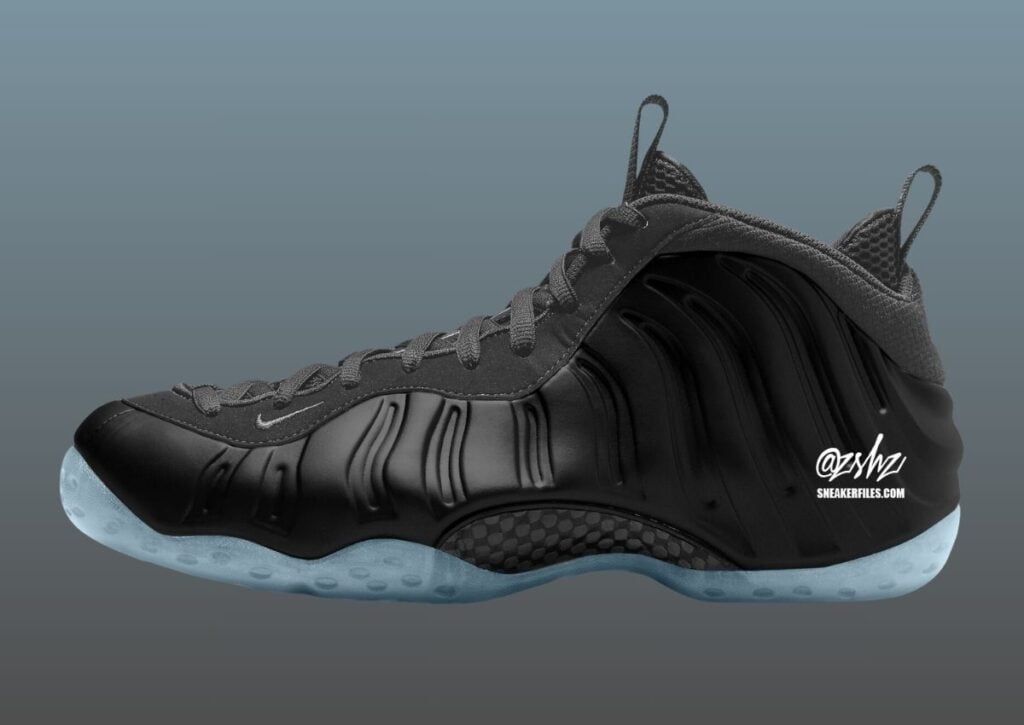 This Nike Air Foamposite One comes dressed in a Black and Dark Smoke Grey color scheme. The image used is a mock-up. However, you can expect the retail release to resemble it. Highlighted with a Black Foamposite shell, giving the pair a sleek look. The same hue fills the carbon fiber shank plate, while a Blue icy translucent outsole allows the pair to stand out. In addition, Dark Smoke Grey appears on the nubuck eyestays and collar. The shoes will come with the standard Penny branding down the tongues, heels, and insoles.