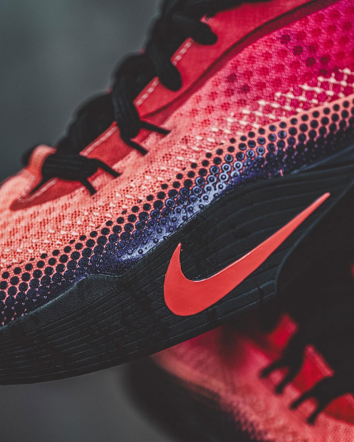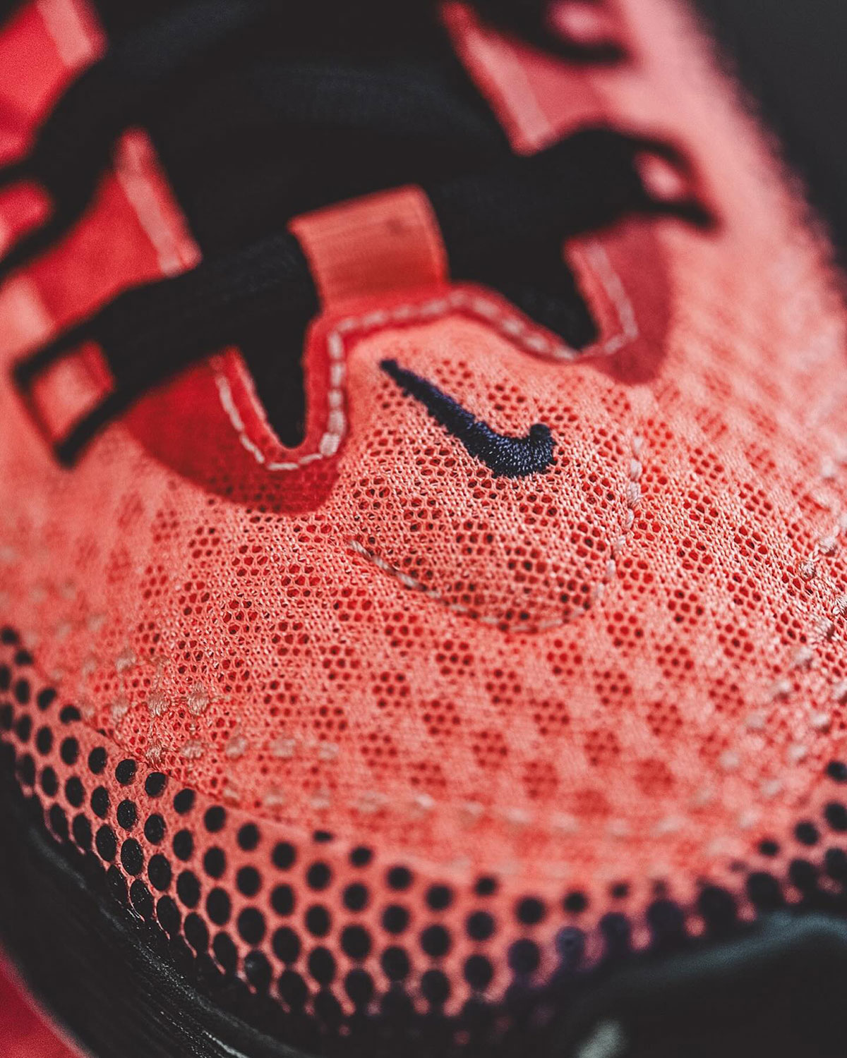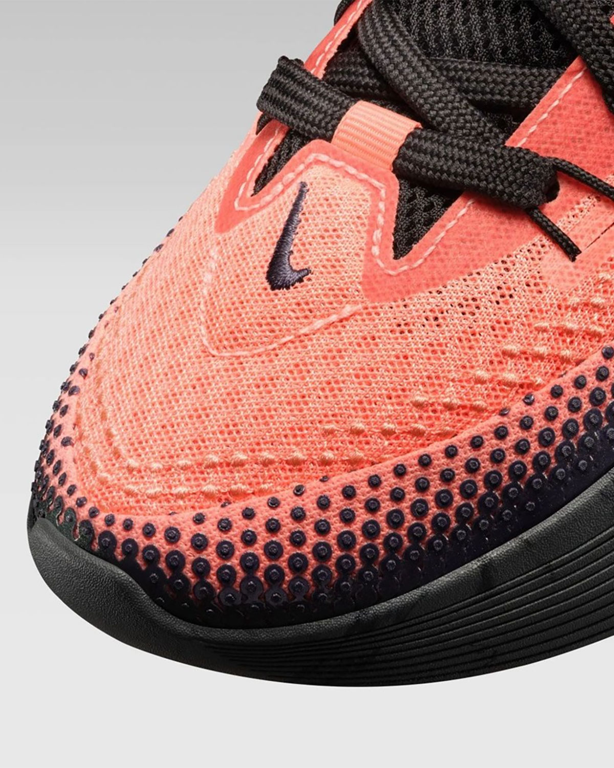 Presumably disseminated to Chinese creators and sneaker media, Nike’s official announcement of the ST Flare specifically designates it as a China-exclusive, tooled for the rich recent history of outdoor basketball in the country. That hardware is immediately apparent in some of these up-close shots, tackling unforgiving concrete surfaces on two fronts: XDR rubber defines the outsole, while deep groves in the herringbone traction add overall thickness that should extend the lifespan of the ST Flare beyond run-of-the-mill models. Working our way up, Cushlon 3.0 foam paces the midsole, with an additional Air Zoom unit embedded within. Finally, a Flywire-equipped engineered mesh upper closes the gap between lockdown and breathability.