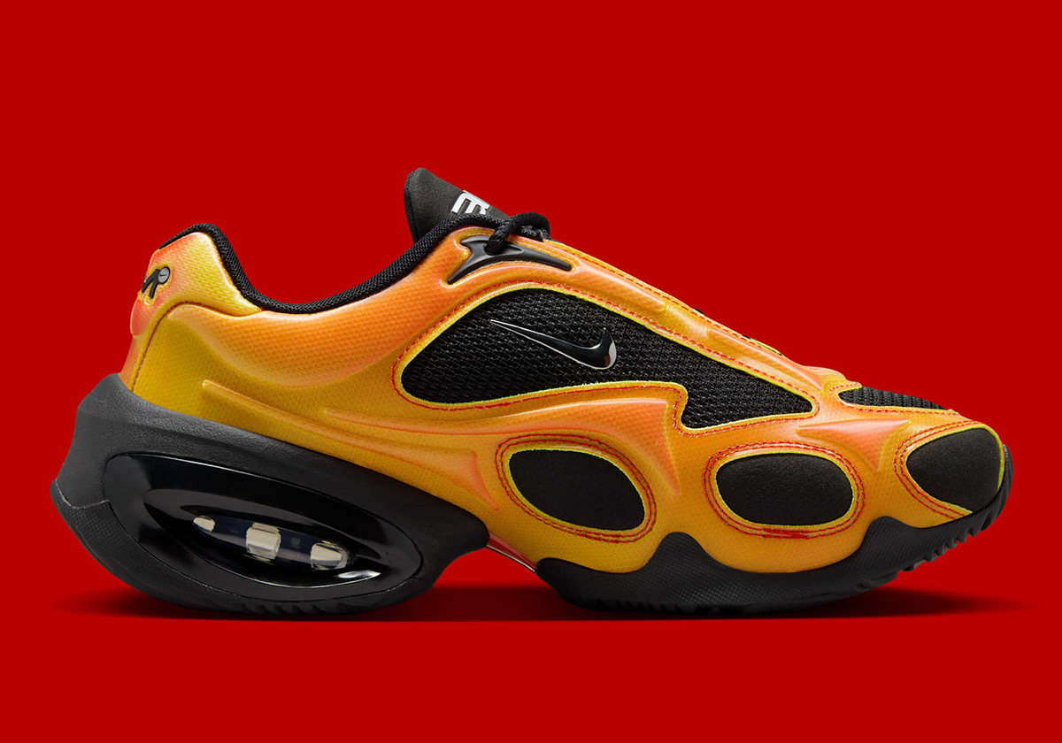 Just like the Nike Kobe 5 of the same moniker, the women’s-exclusive Air Max Muse here sports a black and yellow combination with red accents. The base, midsole, and abstract underlays around the toe all appear in black, while the external leather structure comes in yellow with a slight red iridescent tint. Red contrast stitching can be seen around the quarter and toe, further reinforcing a clear yet unofficial “Bruce Lee” theme.