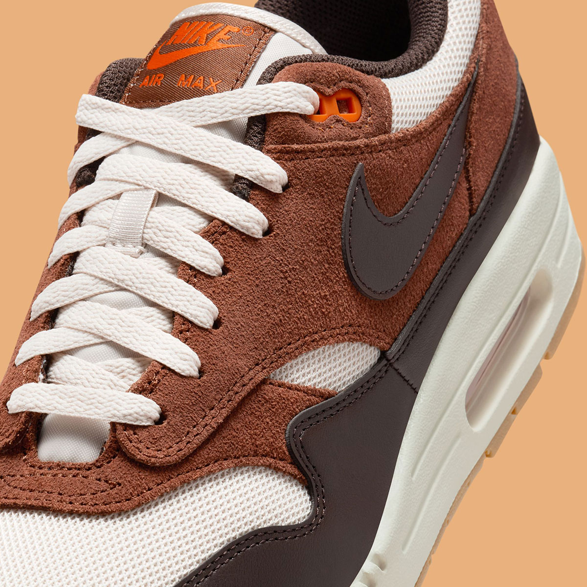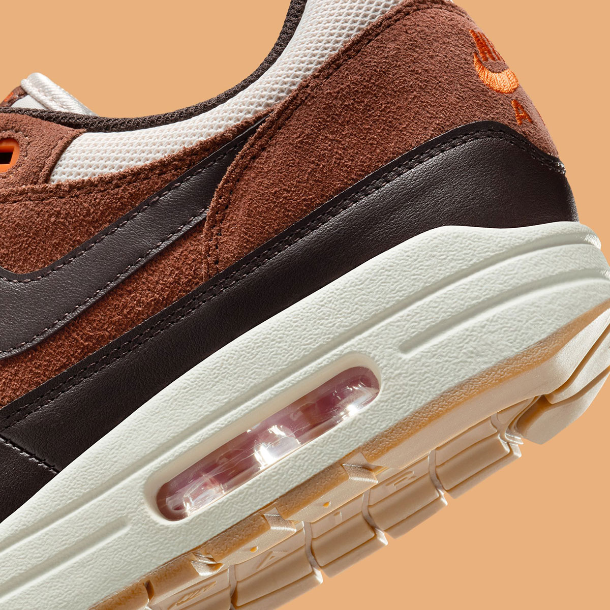 This upcoming iteration of the Air Max 1 Essential captures everything about the late-November festivities, color-matching some of our favorite foods from the Thanksgiving Holiday. A mix of brown shades in Light Orewood Brown, Fauna Brown, and Velvet Brown bring that perfectly roasted bird to the cutting board, while touches of Campfire Orange add the decorative accent that lines dinner tables across the nation.