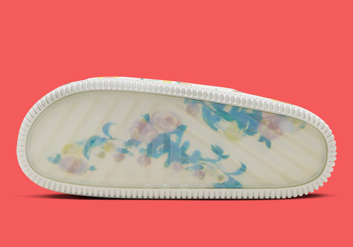 Though these may read as a typical slide, this is a rather notable colorway in the Calm Slide’s history. Typically sticking to monochromatic or geometric looks (which manifested in widespread comparisons to the Yeezy Slide), this signals the dawn of more intricate patterning on the easy-on silhouette. The watercolor depictions of roses and tulips evoke vintage aesthetics, partially explored already in 2024 with the LeBron 21 “Grandma’s Couch.” It allows this edition to thread the needle between refined and tropical, a fine statement piece for warmer weather down the line.