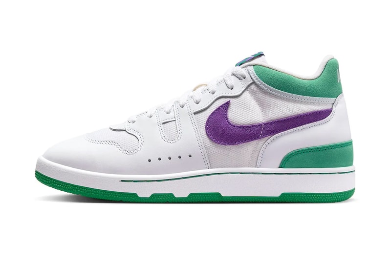 Nike shared a first look at the Mac Attack in "Wimbledon."John McEnroe's signature shoe pays homage to his three Wimbledon championships in 1981, 1983 and 1984. Arriving with a white mesh base with leather overlays, the iteration borrows the color scheme of the Grand Slam tournament with purple suede panel swooshes and green suede on the collar and heel stabilizer. The additional branding details, such as the tongue tag and insoles, also sport the same hues. The shoe then rests on a white midsole and matching green outsole, while white laces tie it together for a clean finish.Check out the model above. The Nike Mac Attack "Wimbledon" is set to release in the coming months — supposed by July in time for Wimbledon 2024 — for a retail price tag of $120 USD.Click here to view full gallery at Hypebeast