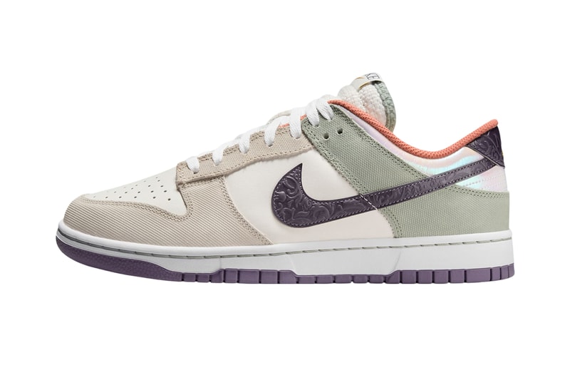 Name: Nike Dunk LowSKU: HV5750-133Colorway: “Floral Swoosh”Retail Price: $125 USDRelease Date: February 8, 2025Retailers: NikeNotes: Nike is ready for Spring with the Dunk Low "Floral Swoosh." Staying true to its name, the heart of the design is a deep purple panel swoosh embossed with intricate floral detailing, while a white leather base, muted green and tan canvas overlays make up the rest of the shoe. Adding to the elevated look is a reflective pearl-like heel panel, while additional branding can be found on the tongue tag, insoles, debossed Nike heel logo and an embroidered gold mini swoosh. The sneaker rests on a white midsole and purple outsole, while white laces tie it together for a neat finish.Click here to view full gallery at Hypebeast