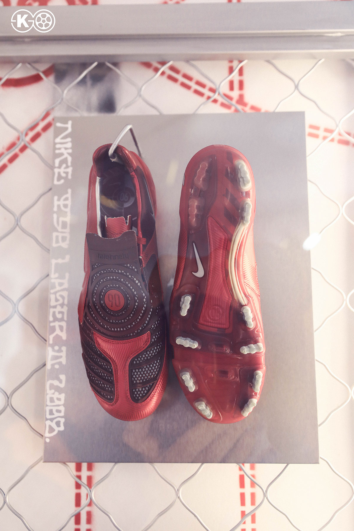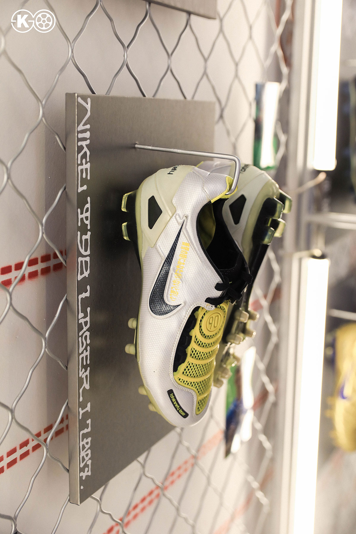 Starting with the displays, Nike constructed a wall of recent/upcoming Total 90 colorways like the original “Metallic Silver” among others. The real highlight was a spread of archival Total 90 boots from the 2000s, including the Total 90 III as well as deep cuts from the “Laser” sub-series (seen above). Attendees were also able to customize their own Total 90 kits, partake in jewelry workshops, and face off in a series of soccer challenges.