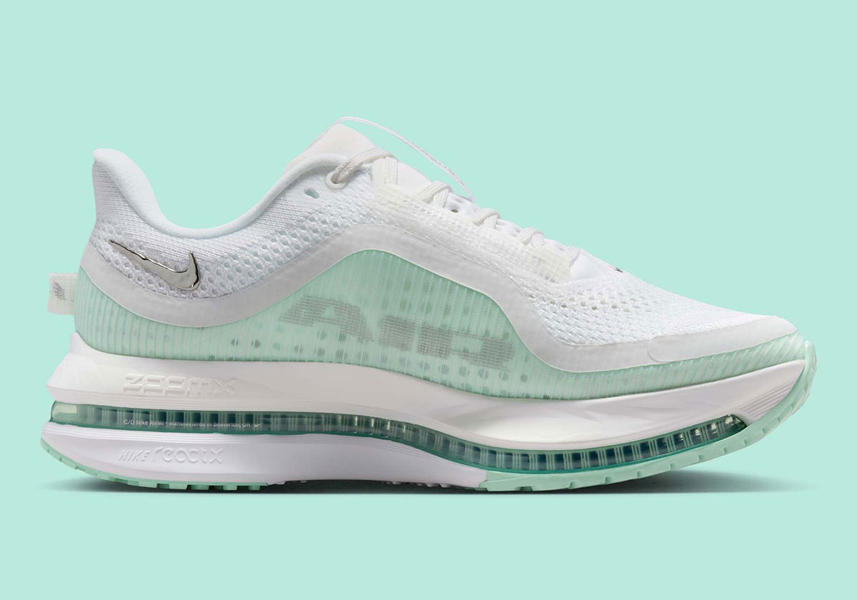 This White/Mint colorway is once again a classic women’s running shoe colorway, with the breathable upper appearing in a calm white. An igloo-green adds a refreshing touch on the transparent upper layering, matched by the outsole traction system and the tensile fibers that make up the full-length Zoom Air. A metallic silver Swoosh finishes out the look.