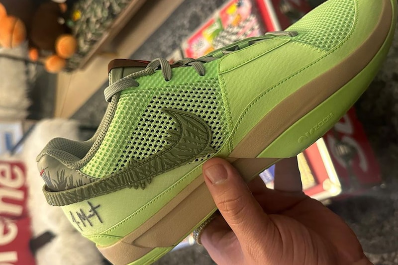 There are still a few months left before spooky season commences, but Nike is getting a leg up on the October festivities by teasing some of its celebratory footwear. NBA point guard Ja Morant will be participating in the action with his Nike Ja 1 "Halloween" colorway which has just been revealed by way of early imagery.The court-ready kicks are costumed with a ghastly get-up. Mesh upper and accompanying leather forefoot overlays are fitted with a Frankenstein-esque green hue and accompanied by olive green Swooshes. The latter is done up with slashed-up textures and creepy skeleton hands on the medial sides. If you look at the kicks from the rear side, you'll notice that ghastly hand patterns are printed on the heightened region and sit adjacent to Nike checks and "12" hits that are filled in with a blood-red hue. Downstairs, the Zoom-cushioned bottoms are dressed with a two-toned gum and green color scheme. Additionally, Morant's signature logo appears on the tongues and insoles for extra flair, the former of which rests atop a brown banner.Expect Nike and other retailers to launch these hoop kicks sometime closer to the October 31 holiday.In case you missed it, detailed images of the forthcoming Nike Kobe 6 "Reverse Grinch" colorway have surfaced. Click here to view full gallery at Hypebeast