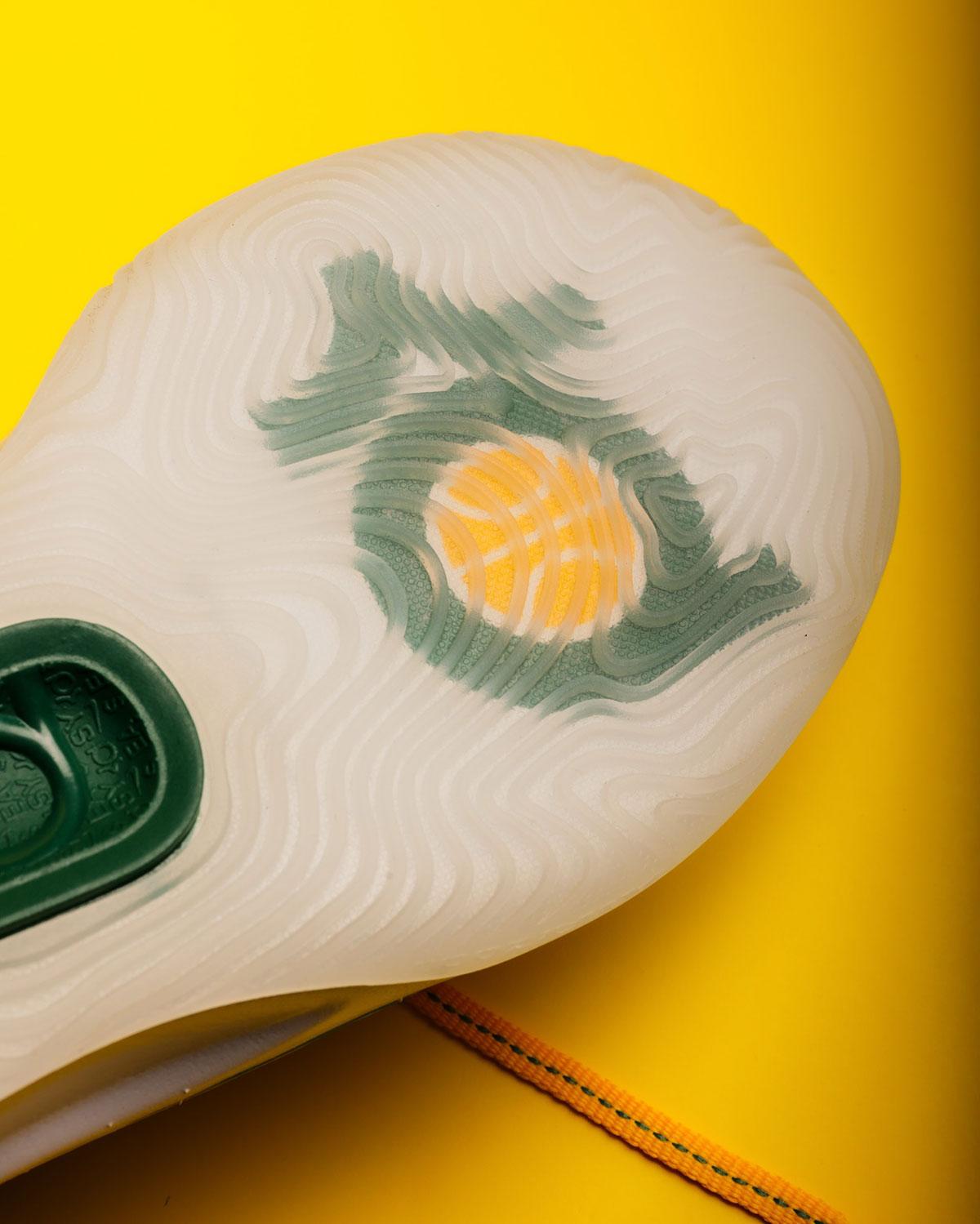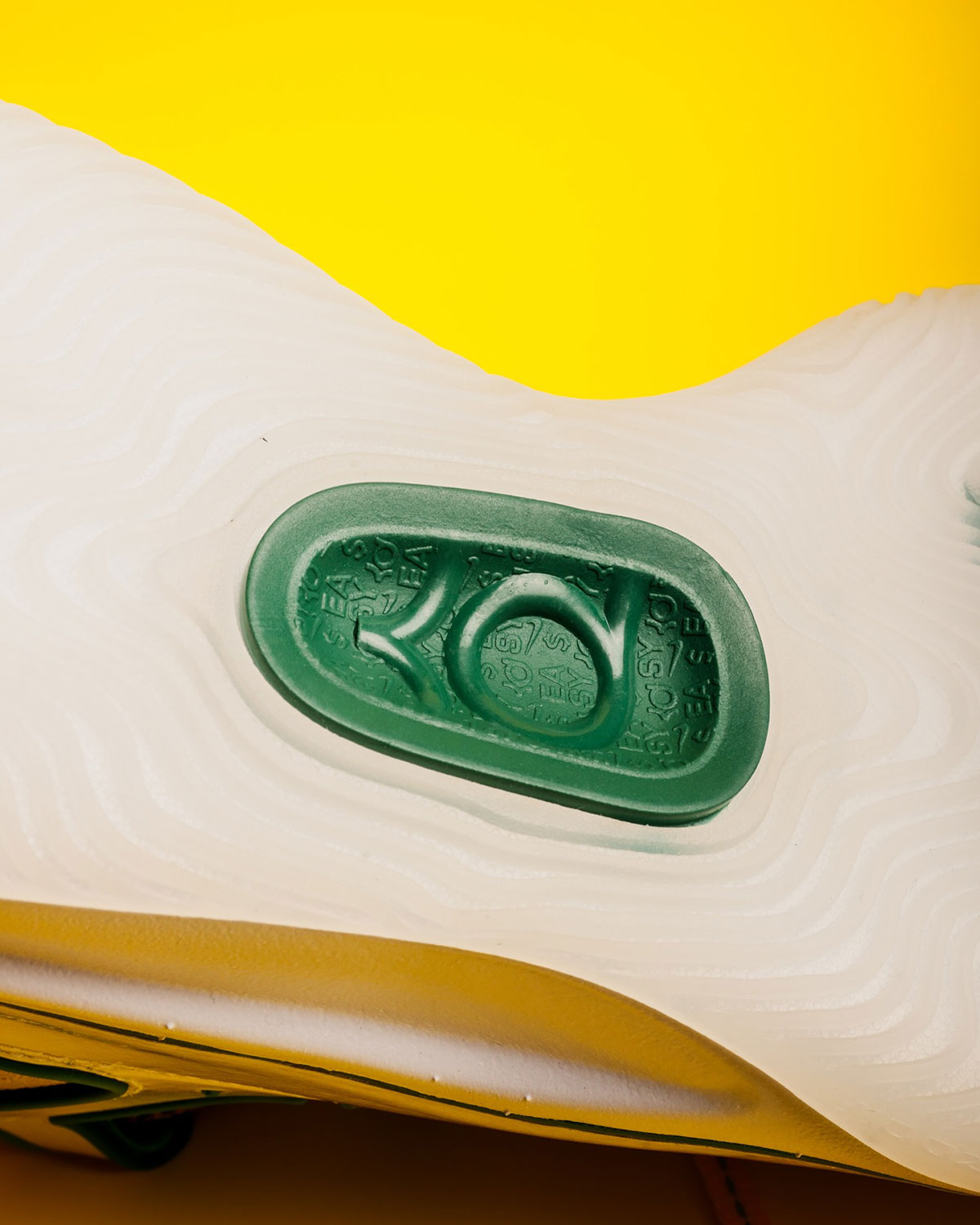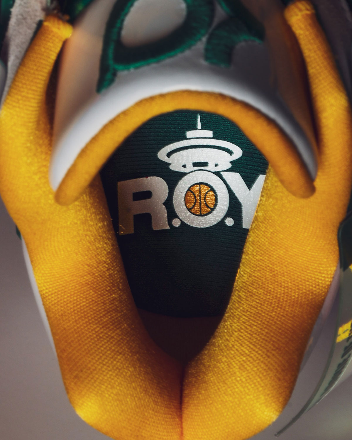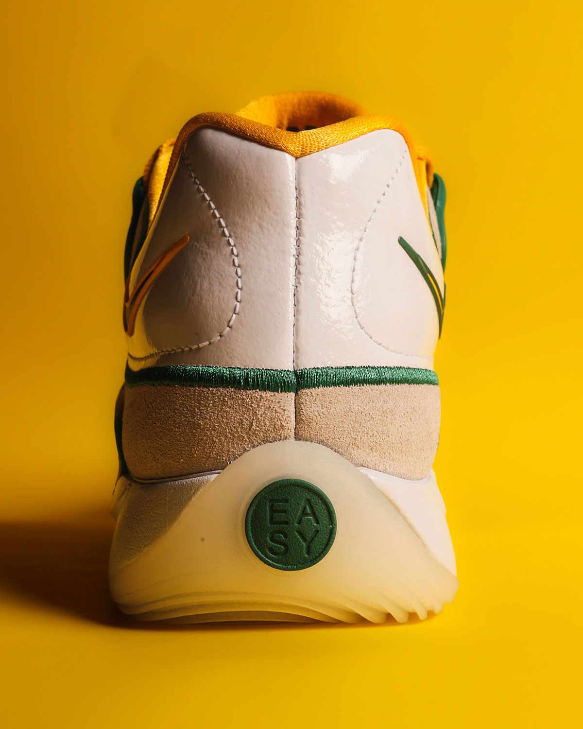 Lost in the mix was a hyper-limited sneaker release that occurred during KD’s appearance. In celebration of hiss eighteen years of service in the NBA and partnership with Nike, the Swoosh created an mega-exclusive 18-pair KD 18 colorway inspired by his rookie–and lone–season with Seattle. Featuring a booming green/yellow/white colorway to match the Sonics uniforms, this collector’s item is decorated with tie-dye patterns as a nod to the Seattle, the date of the 2007 NBA Draft Night, and a Rookie Of The Year logo on the insoles. An added hangtag with holographic striping nods to a specific rookie card from that 2007-2008 campaign.