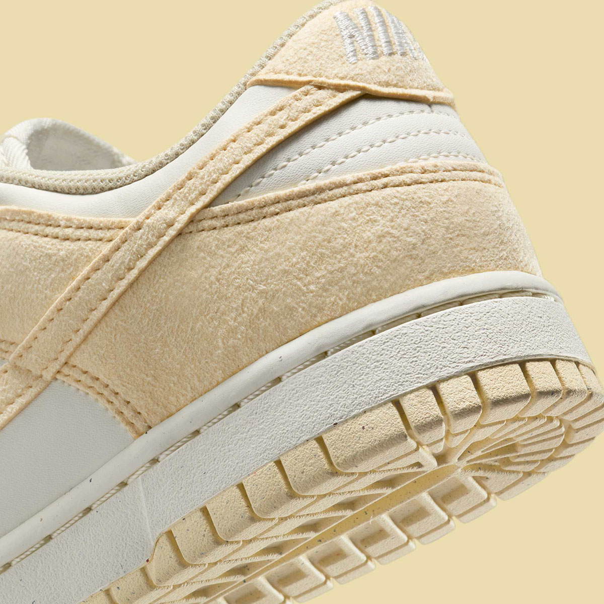 Official images reveal “Soft Pearl” suede overlays atop a “Pale Ivory” leather base, comprising an agreeable soft pastel look suitable for springtime fits. The “Nike” text on the tongue and heel branding is almost completely washed out, aptly keeping with the two main colors at play. This is a Next Nature Dunk, meaning they’re made of at least 20% recycled materials by weight. Therefore, as is almost always the case, the midsole and outsole feature a subtle grind texture.