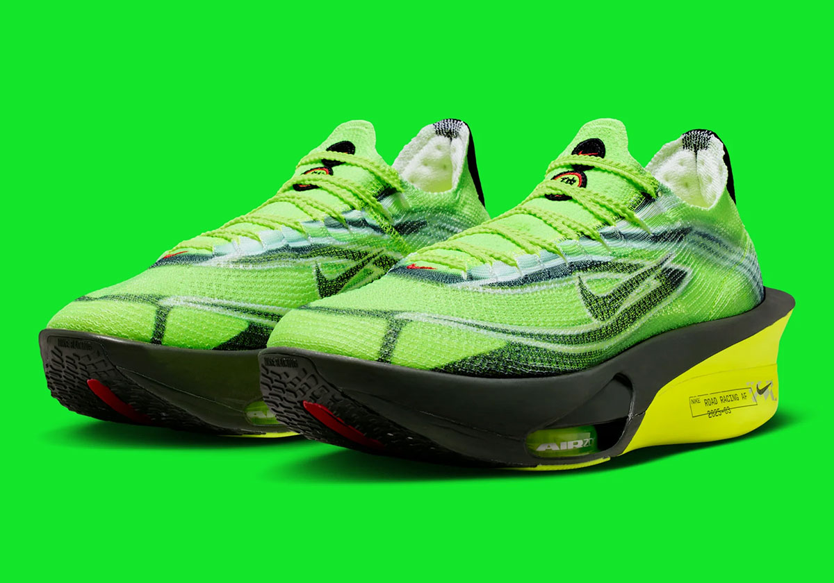 Four models are included — the Vomero Plus, Alphafly 3, Vaporfly 4, and cost-conscious Rival Fly 4. All four sneakers do their best possible Katana impression with eye-catching “Volt” uppers and printed graphics inspired by the model’s distinctive overlays. Paying further tribute, the first three models also feature red Japanese characters on the tongue.