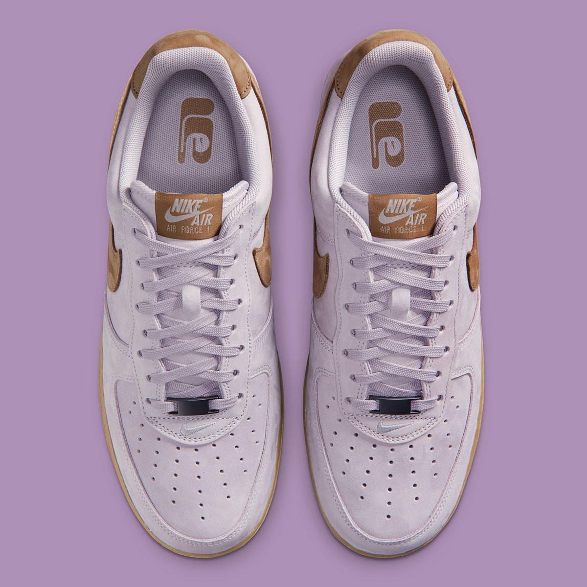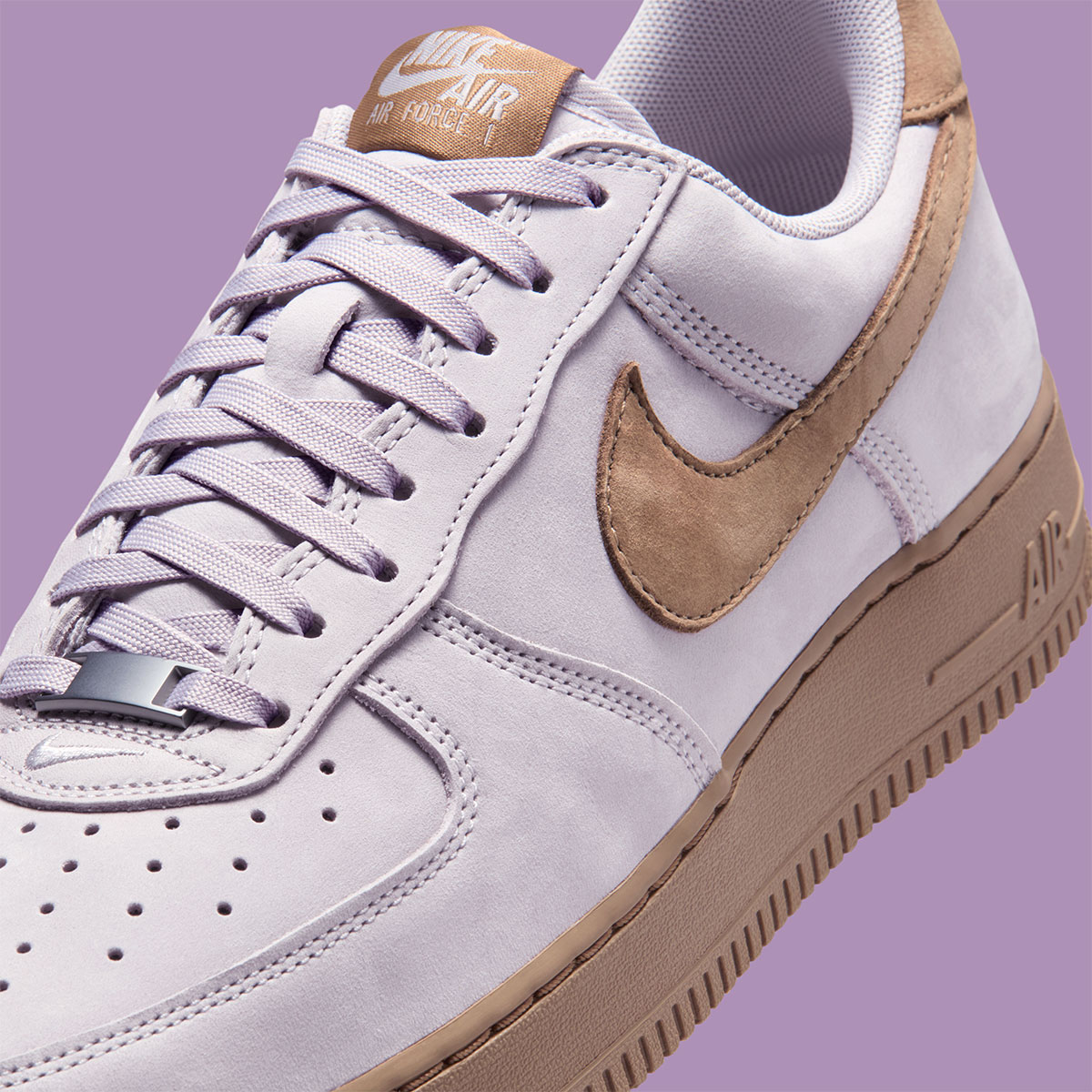 Late 2025 saw the emergence of several Premium styles featuring stripped-down branding, all with all-leather builds and monotone colorways. That same theme of removal continues here, although this time in dual-toned suede. The upper appears in Silver Lilac, while the Swoosh, backtab, and midsole all come in Taupe. The “Nike Air” backtab text and “AF1” on the lace dubrae are removed for simplicity, and as a Premium release, the material quality should land at least a notch above your average GR. There’s also three lines of stitching around the quarter as opposed to two, which should enhance durability.