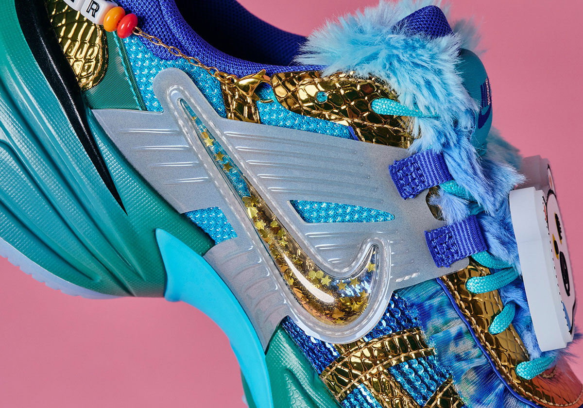 Khovny, who was named after the doctors who saved her life as a baby, brings her love of animals to her V2K Run. This pair is exploding with fun detailing such as the light-up bear, the sequined snake, and a miniature version of her stuffed monkey Pinky Doo Doo.