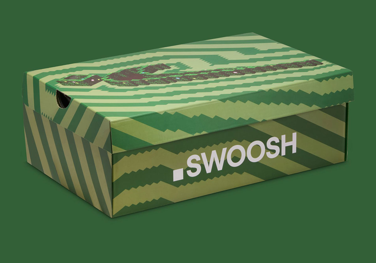 For those who prefer online gaming or binge sessions, dotSWOOSH now provides a way to evade the immortal diss in comfort-forward fashion. Should you not want to trot your setup into the great outdoors in the way that dotSWOOSH’s socials did, taking the reverse angle might be just as effective, something you can do with the pixelated green packaging or the hay-coated colorway for Nike’s recovery slide. A cursor-like hand on the footbed finalizes the motif.
