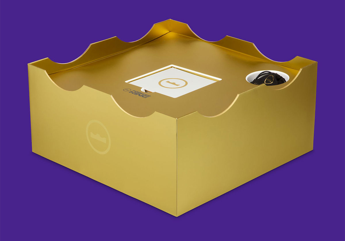 It’s now common knowledge that the Crown motif James has utilized throughout his footwear career gains further importance for his twenty-third, providing the underfoot cradle, but the packaging for this pair takes that concept and runs with it. Almost like a nesting doll, a sleek black shoebox then reveals a gilded carrying case, itself opening to reveal a massive crown-shaped double box. Inside that final layer is where you’ll find the actual shoes themselves, with a special edition dust bag included for a final layer.