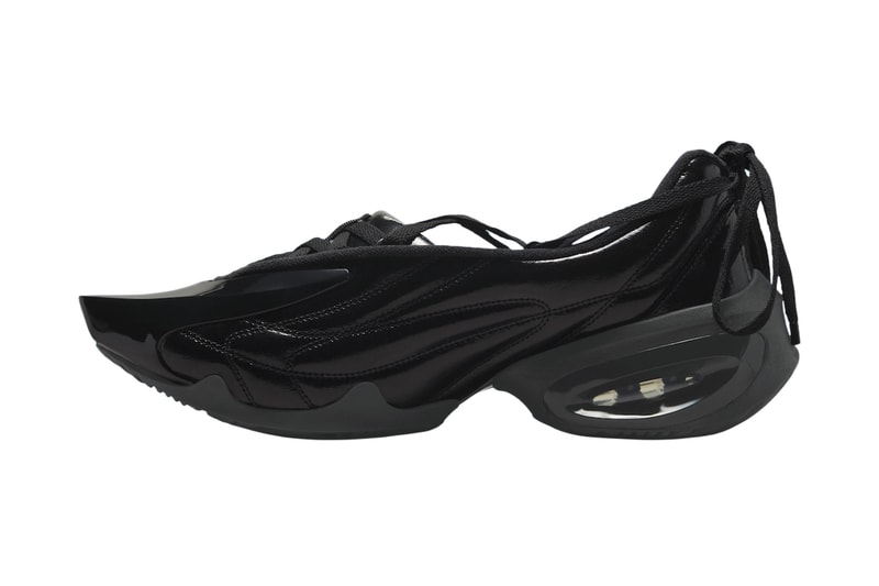 The collection features three versatile colorways: black, beige, and pink. While retaining the Air Max Muse's signature chunky sole and slim forefoot design, the upper has been recreated with inspiration from ballet pointe shoes, resulting in a new silhouette with a pointed toe, a hollowed midline, and a shorter tongue. A notable design element is the glossy TPU on the toe cap and sidewalls. The reflective quality of the material provides a striking contrast to the leather upper, creating an edgy aesthetic that distinguishes this collab from the previous Air Max Muse releases.