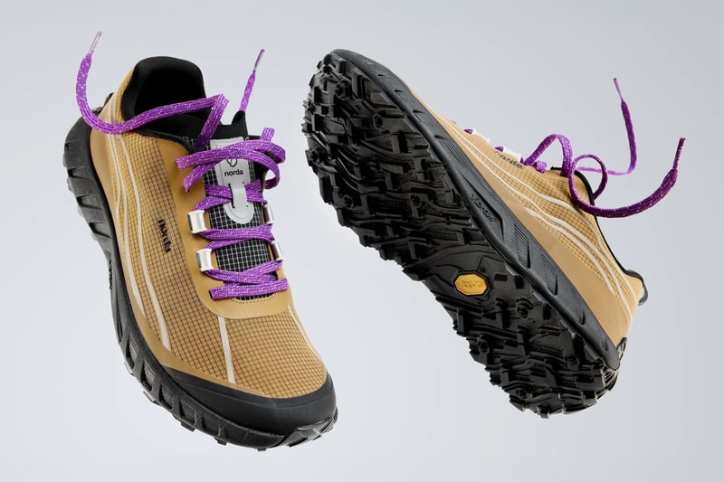 Though their looks may differ, all use norda's proprietary bio-based Dyneema blend for their uppers, a material that's 15 times as strong as steel by weight. Other technical enhancements include custom Vibram SLE midsoles and outsoles that blend Vibram's Litebase and Megagrip technologies, plus a hidden foot locking system, bespoke eTPE insoles and even laces that make use of bio-based Dyneema.