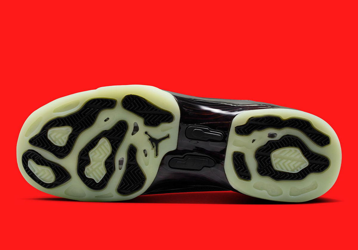 Zach’s design reflects his passion for bikes and cars, a passion he happens to share with one Michael Jordan. Bolt graphics on the eyelets and other chrome accents nod to MJ’s motorcycle collection, while carbon fiber lands on the side panels and spine. A suede collar and quilted sock liner draw from luxury car interiors, and a color shifting purple upper takes cues from custom automotive wraps. The forefoot cover is made from black fabric, and the tongue beneath it carries black elephant print leather. Under the hood, the inner tongue features four stitched Jumpman logos in white. Further down, the outsoles glow in the dark.