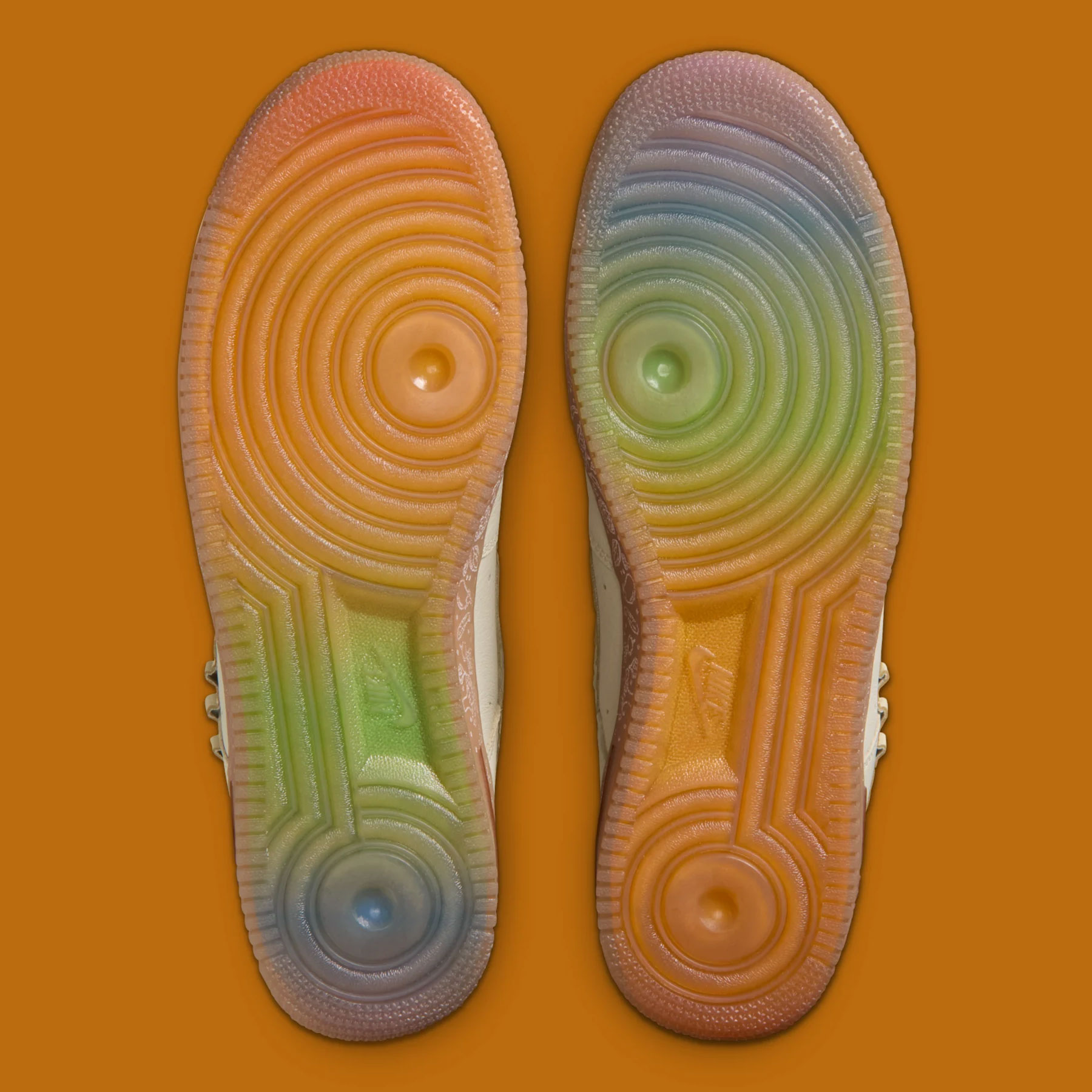 While the base of the shoe leans plain, trust that there’s no shortage of additional narrative notes as you work through the finer details. During Oli’s cancer treatment, he frequently painted rainbows as a symbol of hope for both him and his family, something that inspires the kaleidoscopic translucent tones in the outsole. Finally, Oli shifts the usual lace dubrae of the Air Force 1 onto the tongue, reading “572” in a nod to the same number of laps he completed during treatment (all completed wearing the Uptown).