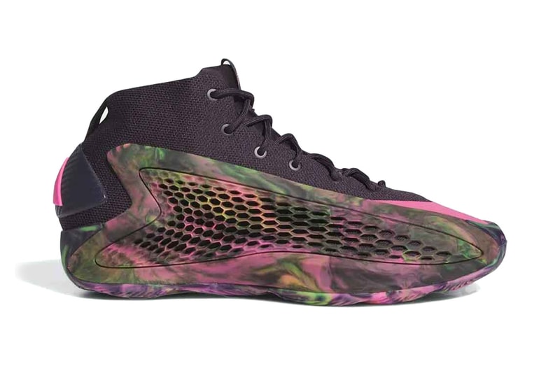 Anthony Edwards is back with another standout adidas AE 1 release, this time sporting a "MX Fuchsia" colorway. This latest iteration features a black knitted mesh upper paired with visually striking TPU side panels. These panels boast a ventilated, marbled effect in vibrant hues, marrying functionality with style. The sneaker's bold aesthetic is further enhanced by adidas' Three Stripe logo in pink, accenting the molded back heel and matching the toe box. Adding to its striking appearance, the sneaker also sports a bright pink Three Stripe logo on the molded back heel in echoing the toe box.From a performance standpoint, the AE 1 is equipped with cutting-edge features including a TPU-encased Jet Boost midsole that offers exceptional energy return and comfort. A full-length torsional plate provides stability during rapid movements, while an expanded herringbone-traction rubber outsole ensures superior grip. In line with adidas' commitment to sustainability, the AE 1 utilizes Primeblue, a high-performance recycled material that reduces plastic waste.The adidas AE 1 “MX Fuchsia” will release in August 2024, available at select adidas Basketball retailers and online. It will retail at $120 USD for men’s sizes and $100 USD in kid sizing.Click here to view full gallery at Hypebeast
