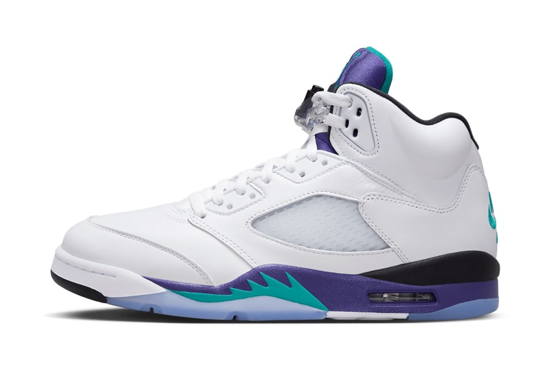 Name: Air Jordan 5 "Grape"Colorway: White/Grape Ice/New EmeraldSKU: HQ7978-100MSRP: $210 USDRelease Date: June 21Where to Buy: NikeUpdate: After being postponed, it's finally time for the Air Jordan 5 "Grape" to make its comeback. Nike has just presented official images of the OG look, highlighting the white, purple, and teal look that we discussed previously below. Nike Air branding is back on the heel as well. Release is now set to take place on June 21 via Nike SNKRS and select retailers at a starting price of $210 USD.Update: Over half a year after being rumored, we now have a first look at the return of the Air Jordan 5 "Grape." The throwback look last dropped in 2013 and is now returning with OG Nike Air branding at the heel. This initial preview of the pair confirms that it will stay true to the original with its "White," "Grape Ice" and "New Emerald" color scheme present across the sneaker. Release is now set to take place on April 19 via Nike SNKRS and select retailers at a starting price of $210 USD.Original Story: 2025 marks the 35th anniversary of the Air Jordan 5, and Jordan Brand may be pulling the heavy hitters out of the archive in celebration: early reports state that the Air Jordan 5 "Grape" will be returning. First released as one of four original Air Jordan 5 colorways in 1990, the "Grape" quickly became an early '90s pop culture icon upon release thanks to Will Smith sporting it in the intro to — and several episodes of - The Fresh Prince of Bel-Air, and Michael Jordan himself donning it on the cover of a Wheaties box.The news, first reported by Sneaker Files and zsneakerheadz, means that the "Grape" will be making its fourth arrival on shelves, and, per their reporting, this iteration will feature the most true-to-the-original shape yet, plus OG Nike Air branding on the heel. After its inaugural release, the "Grape" was retroed for the first time in 2006 as part of Jordan Brand's LS (lifestyle) series, then again in 2013. There was also a "Fresh Prince" iteration that dropped in 2018 to celebrate Will Smith's 50th birthday, which discarded laces in favor of an elastic collar to salute how Smith wore his pair in The Fresh Prince of Bel-Air. Besides those releases, the "Grape" has also served as inspiration for a "Black Grape" colorway in 2013 and an "Alternate Grape" makeup in 2020, not to mention a golf-centric 2020 "Black Grape" release as well.An official date of arrival for the Air Jordan 5 "Grape" has yet to be revealed, but it'll supposedly touch down as part of Jordan Brand's summer 2025 line. Information on pricing is forthcoming too, but the 2025 "Grape" will likely retail for around $220 USD. Stay tuned for further updates as they're made available.Click here to view full gallery at Hypebeast