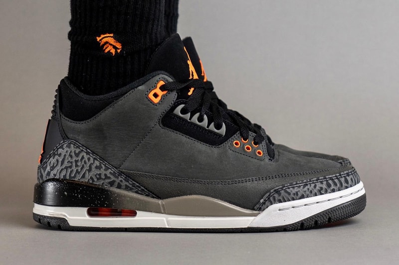 Update: After popping up last week, the YankeeKicks team has treated us to an on-foot breakdown of the Air Jordan 3 "Fear." With one-third of the pack revealed to be returning, we await news of the possible return of the AJ4 and AJ5 iterations. Release remains expected for November 25 at a price of $200 USD. View this post on Instagram A post shared by YankeeKicks ™️ (@yankeekicks)Original Story: Throughout this century, Jordan Brand has kept its eyes fixed on not only the future, but the past and present as well. Innovation remains crucial to the division, leading to new silhouettes such as the recently announced Air Jordan 38. However, it also remains focused on celebrating its heritage. In January, rumors of the "Fear" colorway of the Air Jordan 3 returning to the market hit the net. Now, ten years after its debut, a first look at the remake has popped up.As expected, this faithful reproduction of the pair sees various grays spread throughout the upper with "Total Orange" accents sprinkled in. Elephant print touches down at the toe and heel while leather and suede go back and forth at the upper. Black detailing joins in at the collar, eyestay, laces and sole unit while the aforementioned orange dresses several eyelets and the Jumpman logos found at the tongue and heel.While Nike has yet to disclose any details regarding the long-awaited return of the Air Jordan 3 "Fear," rumors are pointing towards a release date of November 25. Look for it to land on shelves via Nike SNKRS and select retailers at a price of $200 USD in a complete family size range. View this post on Instagram A post shared by ?? OpTic CH3F (@masterchefian)For more of the latest news from the footwear industry, "Brilliant Orange" is touching down on the Air Jordan 12 to celebrate the 2023 WNBA All-Star Game. Click here to view full gallery at Hypebeast
