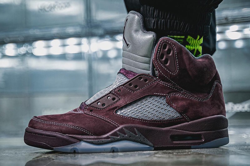 Update: Following retro rumors that surfaced at the end of 2022, a first glance at the upcoming Air Jordan 5 "Burgundy" has arrived -- albeit without its laces. As expected, a "Deep Burgundy" has covered a majority of the sneaker's upper with a soft suede finish. Additional details -- including silver metallic accents -- stay true to the sneaker's original form. September 9 remains the expected release date with a $225 USD price tag attached to the pair. For more information about this pair, be sure to check out our initial coverage below.Original Story: The Air Jordan 5 had quite an eventful 2022 as it was produced in collaborative form alongside CLOT, PSG and hip hop mogul DJ Khaled and saw nostalgic colorways like the "Green Bean" return to the frontlines. And now that those are in the rearview mirror, the Jordan model already has its eyes set on delivering the heat in 2023, and the latest to be brought to our attention is a retro release of the Air Jordan 5 "Burgundy" colorway.Originally during the AJ 5's impressive run in 2006, the understated installment is set to make its way back to the shelves with all of its original design cues. Buttery suede upper panels are styled in a "Deep Burgundy" hue which is reminiscent of aged wine, and this is contrasted by "Flint Grey" shoe laces and reflective tongues. Lace toggles will have the usual see-through construction and the tongues will be fitted with Jumpman logos that are dressed in the pair's titular shade. Spiky molds on the midsoles feature more "Flint Grey" accents while the bottoms are done up with icy constructions.Mark your calendars for a September 9, 2023 release and expect these to retail for $225 USD.In other news, Air Jordan 9 "Light Olive" official images have popped up. Click here to view full gallery at Hypebeast