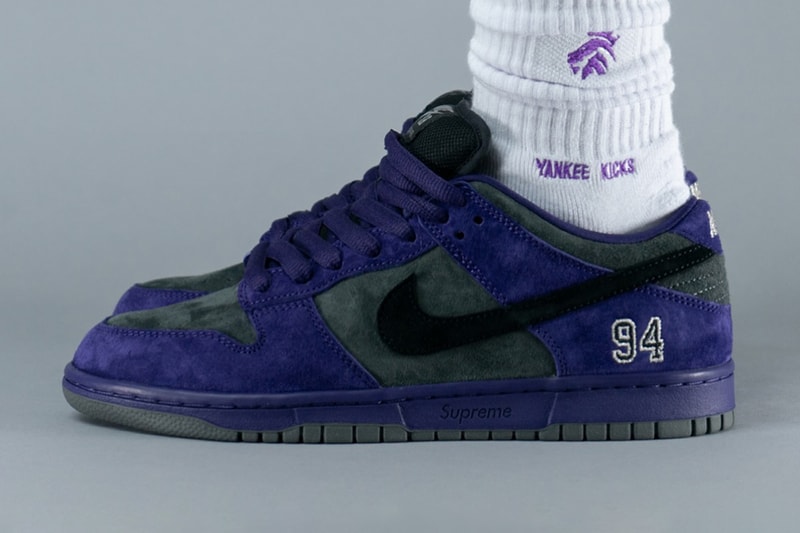 Update: One week after sharing a first look at what to expect from 2025's Supreme x Nike SB Dunk Low collection, an on-foot preview of the "Ink" colorway has now surfaced. The purple and gray arrangement, which we detailed in our initial breakdown below, also features a co-branded sockliner in red. Release details for the sneaker remain ambiguous as plans continue to take shape so stay tuned for more info as we expect all five pairs to drop at some point via Supreme next year at a price of $135 USD each. View this post on Instagram A post shared by YankeeKicks ™️ (@yankeekicks)Update: Word of Supreme and Nike coming together for a new set of SB Dunk Lows took the sneaker world by surprise back at the end of September. Now, various leaks have led to our best look yet at the forthcoming five-shoe project. Pictured here is the "Ink" colorway that features a suede upper in gray with purple overlays and black Swooshes. The pair, as with its four other looks, sees "Supreme" text debossed at the lateral midsole and "94" embroidered at the lateral heel, nodding to Supreme's founding year of 1994. A Nike SB x Supreme-branded orange hang tag will accompany each pair as the other colorways will don suede in "Camper Green," "Black" and "Ocean Fog" while a "White/Metallic Silver" favors a leather upper. Release is expected to take place at some point during 2025 via Supreme at a price of $135 USD each.Original Story: Supreme and Nike have worked closely together for decades, resulting in some of the most exciting releases of each year. The duo just presented their Jordan Brand collaboration today and are also rumored to be returning to the Nike SB Dunk Low in 2025, as revealed by thesolesorcerer_backup, who shared images of three sample pairs.Supreme and Nike last collaborated on the SB Dunk Low and High in 2023, covering the sneaker in artwork by the late Rammellzee. Based on the samples that surfaced, which have been reimagined in the mock-ups visible in the embedded Instagram post below, a soft upper sees a "94" hit at the lateral heel, referencing the year Supreme was founded. Debossed Supreme branding is also visible at the midsole while the three color compositions look to incorporate combinations of blue and gold, white and gray, as well as all-black.At the time of writing, neither Supreme nor Nike have confirmed that they will be releasing new SB Dunk Lows in 2025. Stay tuned for updates, including imagery of all three rumored pairs, as we currently expect the release of the anticipated collaboration to take place sometime in 2025 via Supreme. View this post on Instagram A post shared by Supreme DROPS (@dropsgg)Click here to view full gallery at Hypebeast