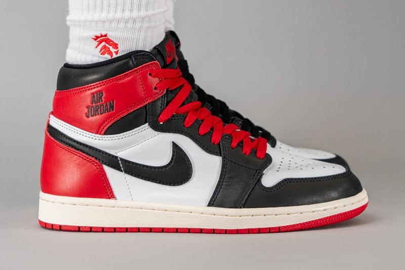 Update: After catching an initial glimpse at the sneaker earlier this week, we now have a closer look at what to expect from the Air Jordan 1 “Black Toe Reimagined.” Its black, white and red leather build has been highlighted once again as the sneaker remains anticipated for an October 18 release via Nike and select retailers at a price of $180 USD.