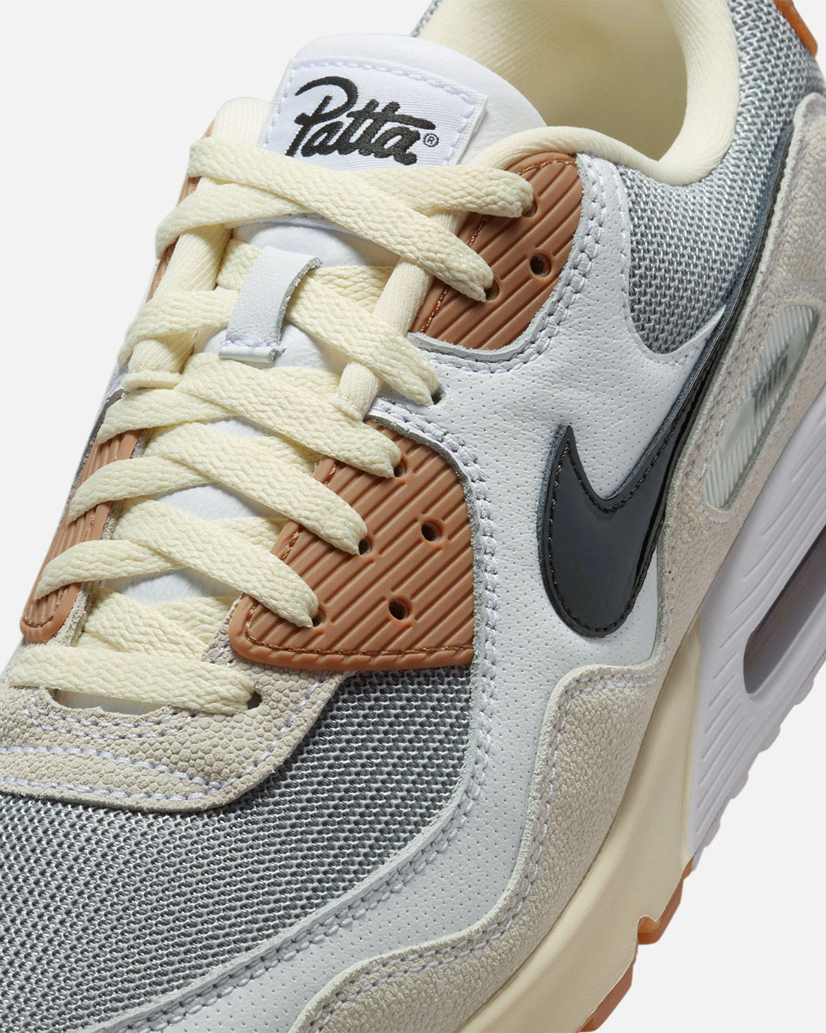 As mentioned in our headline, the Nike x Patta Air Max 90 tees off via pattaxnike.com and the brand’s Amsterdam, London, and Milan locations at 13:00 local time (8 AM EST.) Note, however, that the online launch does not ship to the United States. As of this writing, it’s unclear which, if any, of the new colorways will eventually hit SNKRS.
