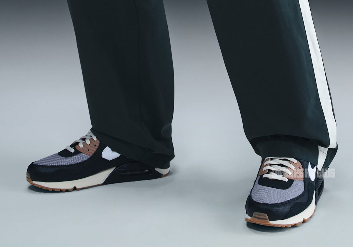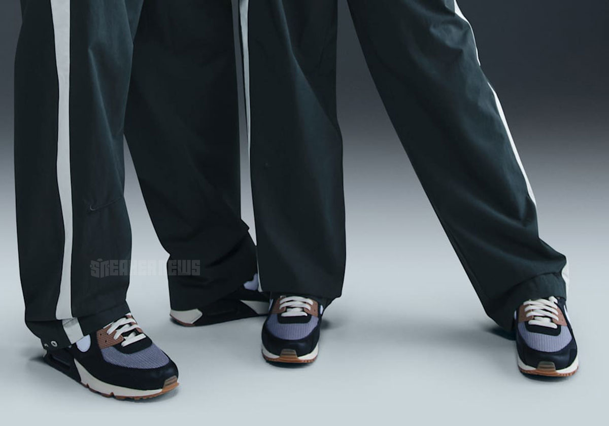 Shown here for the first time via official Nike images, one of the two upcoming pairs features a palette of “Black/White/Particle Grey/Anthracite/Gum Medium Brown.” The quarter/toe is cut from what appears to be perforated leather, while black suede can be spotted at the bottom of the tongue. Of course, the hallmark feature is a wavy mudguard akin to Patta’s line of Air Max 1 collabs from 2021-2022. While Patta’s June Air Max 90 duo complements summertime with bright accent colors, this look is decidedly more autumn-appropriate (see the “Gum Medium Brown” soles underfoot).