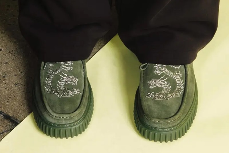 Name: PLEASURES x Clarks TorhillColorway: “Black,” “Green”SKU: TBCMSRP: TBCRelease Date: November 22Where to Buy: PLEASURESLA-based label, PLEASURES is joining forces with British footwear brand, Clarks for a footwear collaboration featuring two distinct Torhill styles.Arriving in black and green, both styles feature a suede upper with TPR outsoles. Clarks’ highly-recognizable Wallabee serves as the inspiration for the upper, while the soles boast a ribbed and chunky form that’s reminiscent of the brand’s Big Gripper from the ‘90s.The green variant spotlights an embroidered design of a Chinese dragon on its toe box, completed with tonal laces and embossed PLEASURES logo on outer laterals. As for the black colorway, the shoe spotlights a decorative motif in a contrasting white — a design that is echoed on the heels, while PLEASURES’ logo iterated in a calligraphic typeface on the outward-facing sides.Click here to view full gallery at Hypebeast