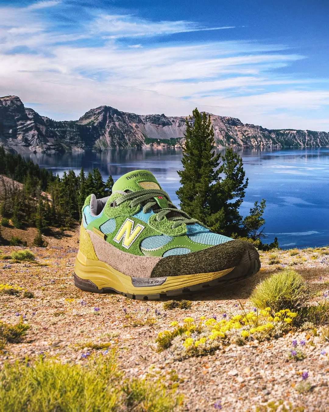UPDATE 2/9/26: Salehe has confirmed the global release of his New Balance 992 style, dubbed “Calm be the Crater”. The colorful look takes inspiration from the landscapes surrounding Oregon’s Crater Lake, mostly using vivid blue & green tones to mimic the water and trees. Pairs will release via Bembury’s personal website, for $220. ORIGINAL STORY: […] The post Salehe Bembury’s “Calm be the Crater” New Balance 992 Releases This Week appeared first on JustFreshKicks.