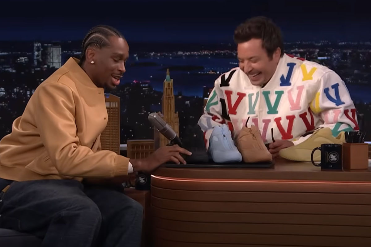 Capping off a rangy conversation touching on his tunnel fashion statements, NBA 2K cover, and custom Chrome Hearts for the SNL alum, of course the conversation had to touch on his Converse signature shoe. After revealing a bit of insight into the design process, Fallon flipped the script by assisting the scoring leader, serving up a tray of three upcoming colorways all set to drop on October 2nd: the Hail Clay, Masi Blue, and Charm Black. Each capitalizing on a monochromatic theme, they’re further united by familial ties, inspired by Mrs. Gilegous-Alexander’s eye color, brother Thomasi’s favorite hue, and mother Charmaine’s tendency to dress in all-black.