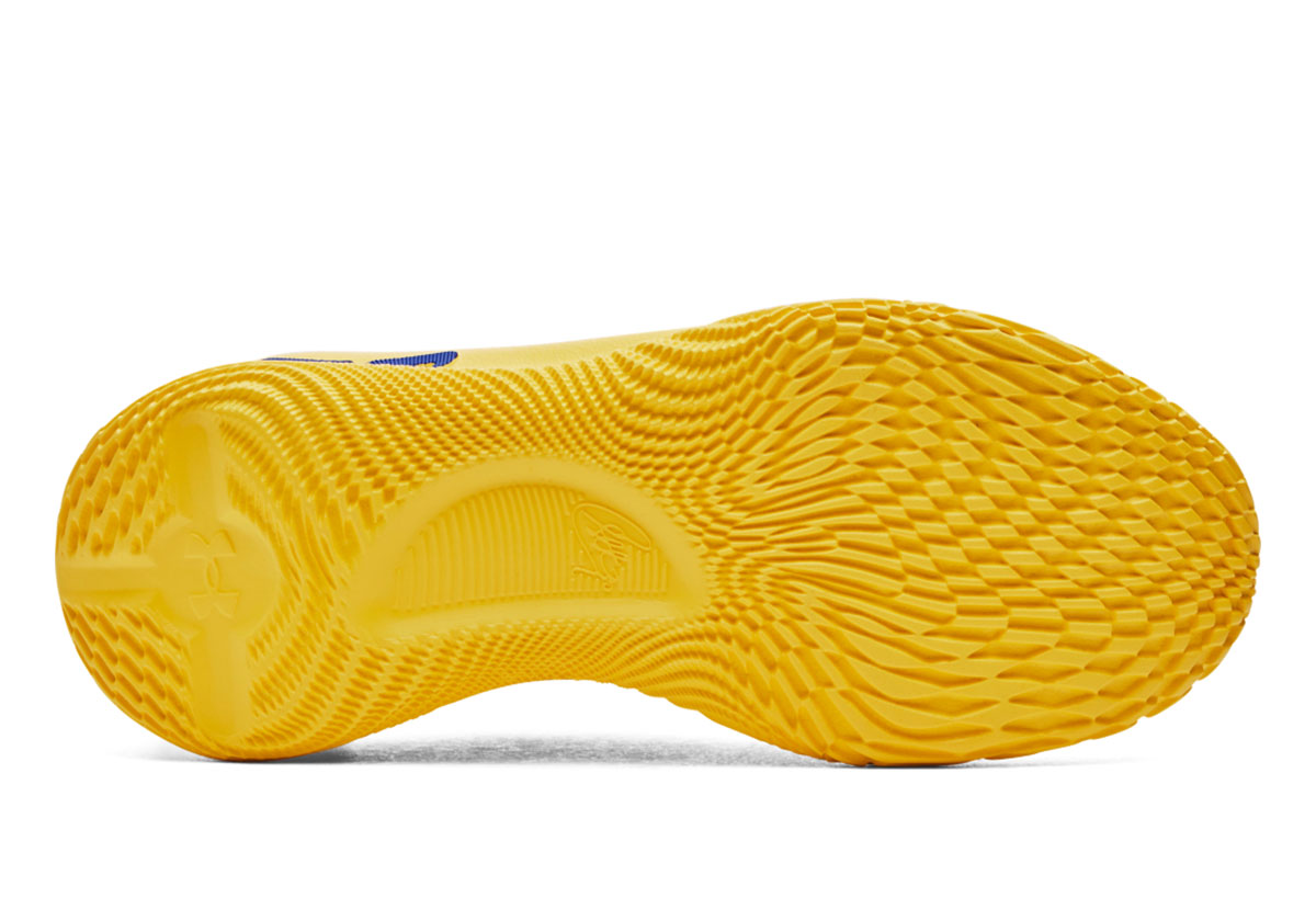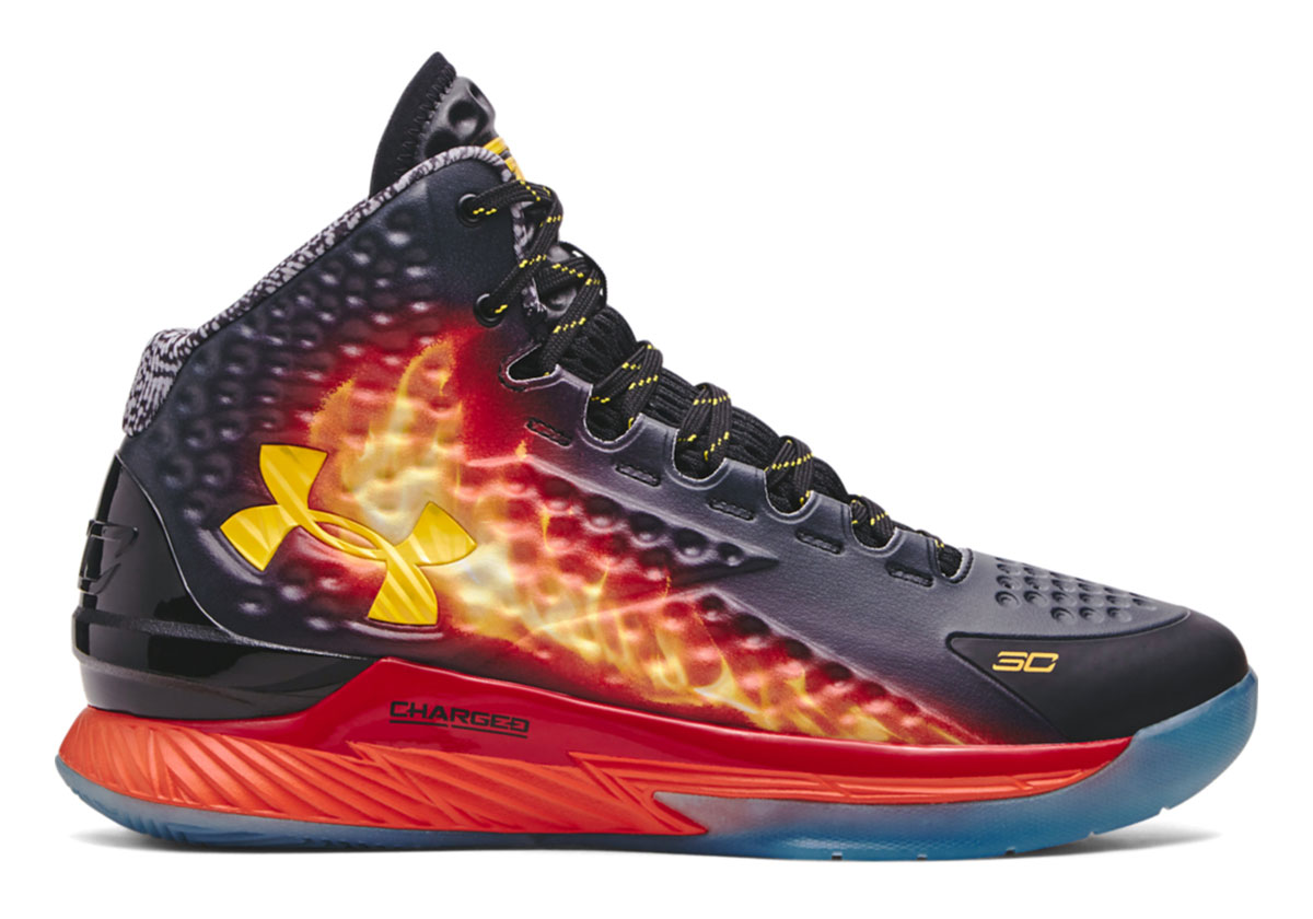 Curry’s first signature shoe presents the most obvious NBA Jam callback, treated with screen-printed flames that evoke memories of Tim Kitzrow’s memorable “He’s on fire!” line. The Curry 4 Flotro comes complete with a blue and yellow Golden State Warriors palette inspired by his 2018 All-Star PE, while the Curry Splash mixes together vibrant shades of purple and blue in a South Beach-esque design.