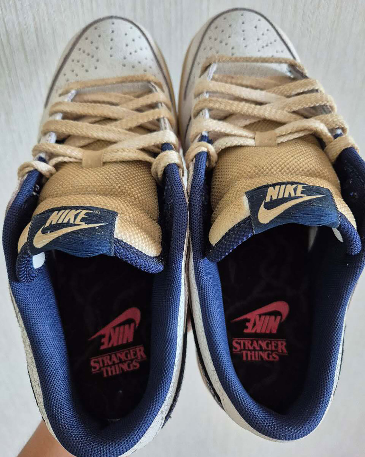 The Stranger Things Nike Dunks don’t have a firm release date yet, but it’s likely both colorways will coincide with the show’s final season during the Holiday 2025 shopping window. See detailed images of the “Phantom/Midnight Navy” colorway below as anticipation builds.