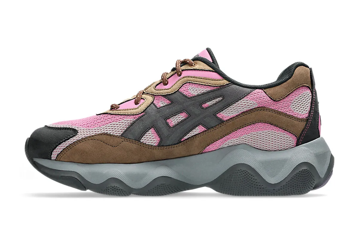 The Neotide model looks similar to many Asics Sportstyle models we’ve seen in recent years, but makes some important additions in terms of recycled parts. The upper features a knit base layer made from 100% recycled materials, while the laces come in at 75% reused. This is layered suede and nubuck panels in a design inspired by the GEL-NYC. The midsole, a new bulbous tooling, contains 25% recycled rubber in the cushioning foam, and the same amount of recycled rubber in the tougher outsoles. Inside, the shoe packs Asics’ signature GEL cushioning, which is made from 100% in-house GEL technology processing waste. The Neotide will come in two colorways, a dark “Brown Storm” edition, and a lighter “Sweet Pink” style.