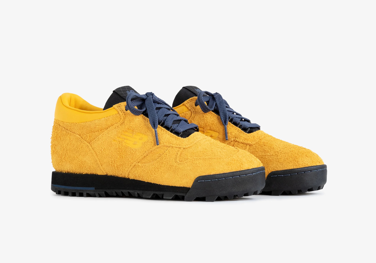 Categorized in a much more playful palette in comparison to its more rugged treatments in late 2022, the National Park-inspired silhouette broadens the Aimé Leon Dore x NB Pantone wheel that’s been thoroughly combed through by Santis and co. Assuming the same basic embellishments, a weather-ready jet-black tint adheres to the sole unit and tongues of each model. Elsewhere, the Cordura tooled clad-suede upper is doused in either mustard yellow, chestnut or faint grey with respective navy, purple, and bright orange laces that provide a contrasting two-toned treatment above.