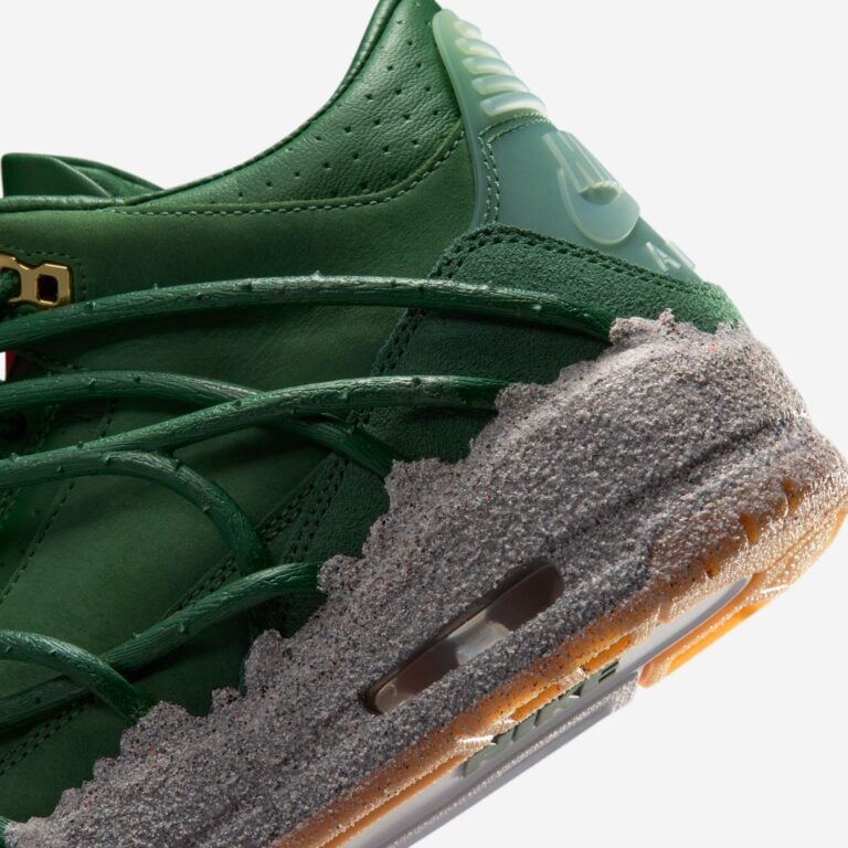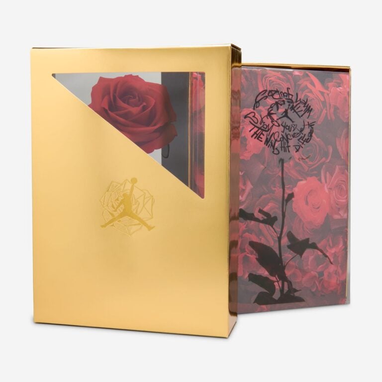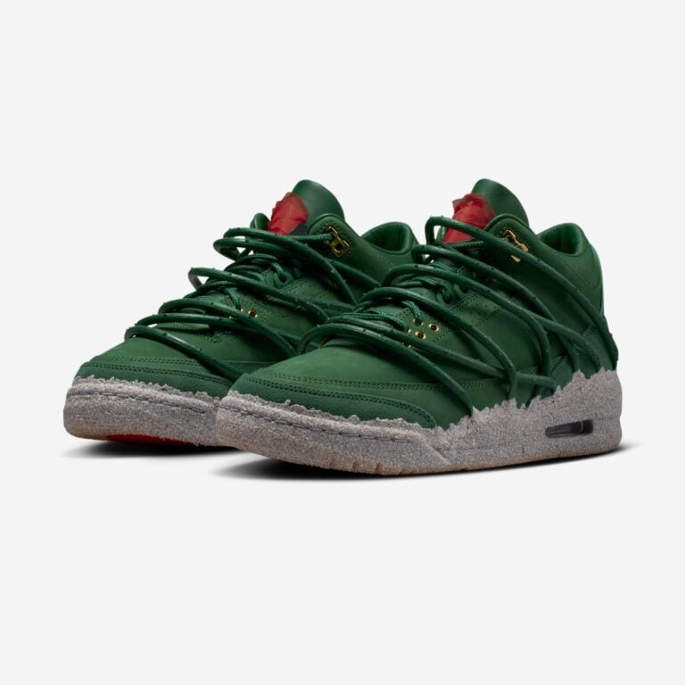 Over the weekend, Taylor teased her next release from Jordan, a limited-edition style of the Air Jordan 3. We first heard about the project via leaks months ago, but this is our first look at the new style, reportedly releasing in March, just over a week before the Oscars. While the exact backstory behind this release is currently under wraps, the “Concrete Rose” name is a clear nod to Tupac’s poem “The Rose that Grew From Concrete”. Dressed in a dark Fir green color scheme, the shoes have vine-like laces that wrap around the silhouette, and a bold red rose logo on the tongues.