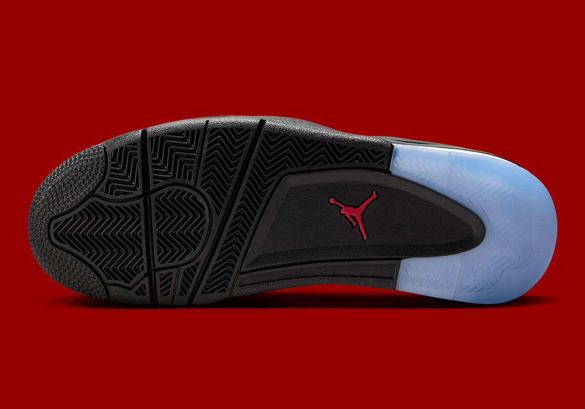 Throughout its year-plus on the shelves, the Air Jordan 4 RM hasn’t shied away from adapting the most iconic looks from its parent model or from the Jordan Brand archive as a whole. Thus, it’s no shock that a black-heavy edition is coming to light, nor is the “Varsity Red” detailing that connects to MJ’s Chicago playing days. What does mark an unexpected aspect is the icy traction in the back half of the outsole, not typically a touch associated with the AJ4 but one that looks clean enough in this application.