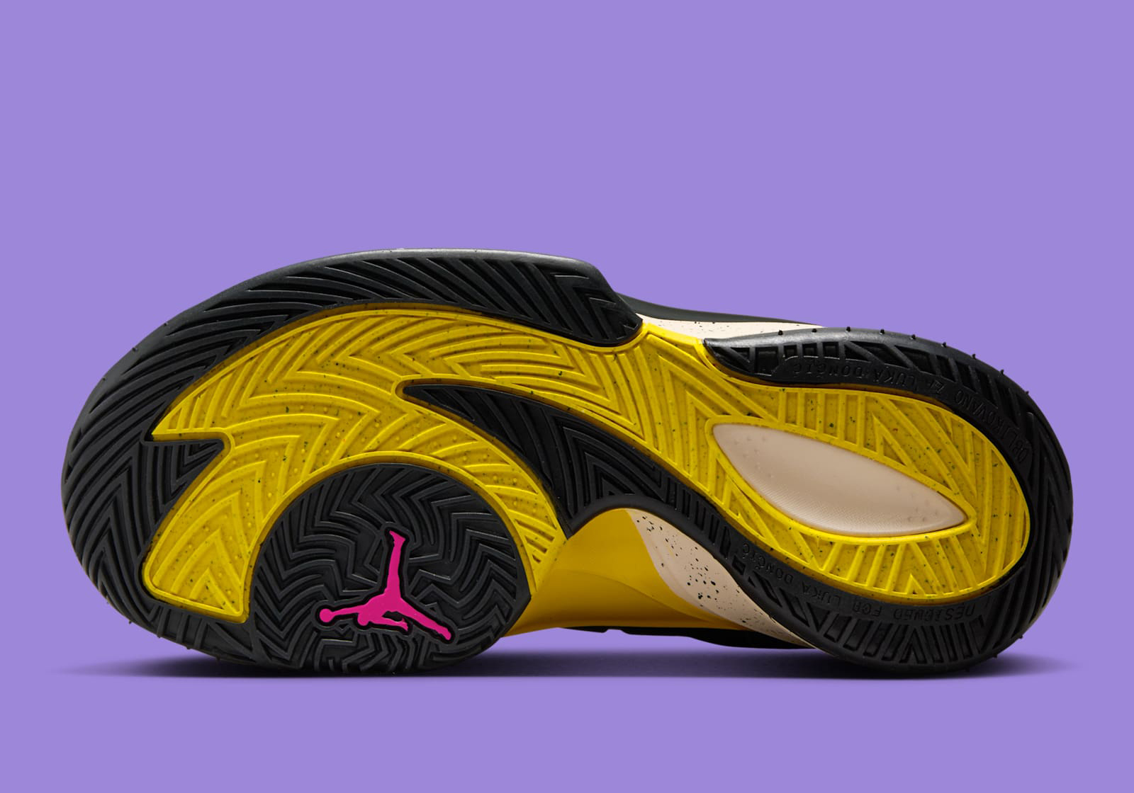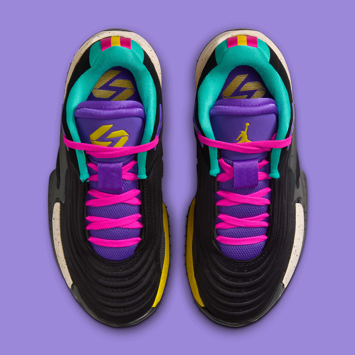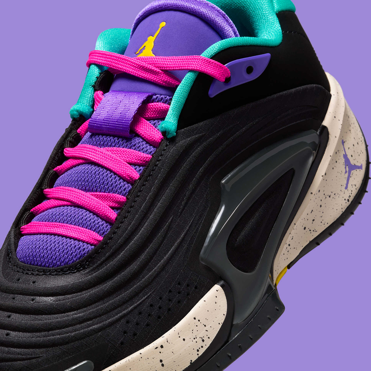 Each of those hi-vis hues is made all the more impactful by a foundation of black, dark grey, and white, with the electric yellow hit on the lateral midsole perhaps the most striking. Furthermore, the balance between reserved and ultra-flashy makes this a fit for both demographics it’ll release for, landing in both adult and grade school sizing.