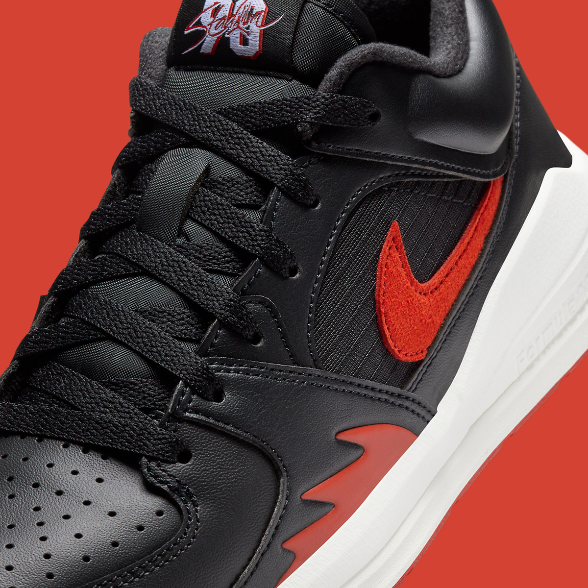 Drawing upon the Air Jordan 1 and 5’s design language, the low-top trim’s latest colorway mirrors its “Royal Blue” effort from this past July with a near-clad pitch-dark upper and a contrasting “Sail” tinted sole unit. Taking the same placement as the latter, a vibrant “University Red” finish ascertains the suede profile swooshes and the embroidered heel counter logos before spreading further crimson accents along the tread, tongue tab and the fighter jet-inspired forefoot overlay.