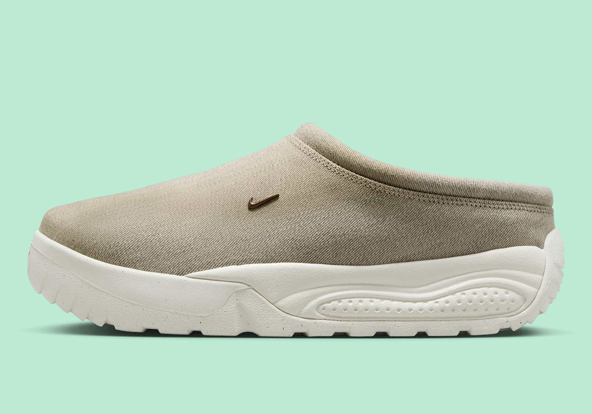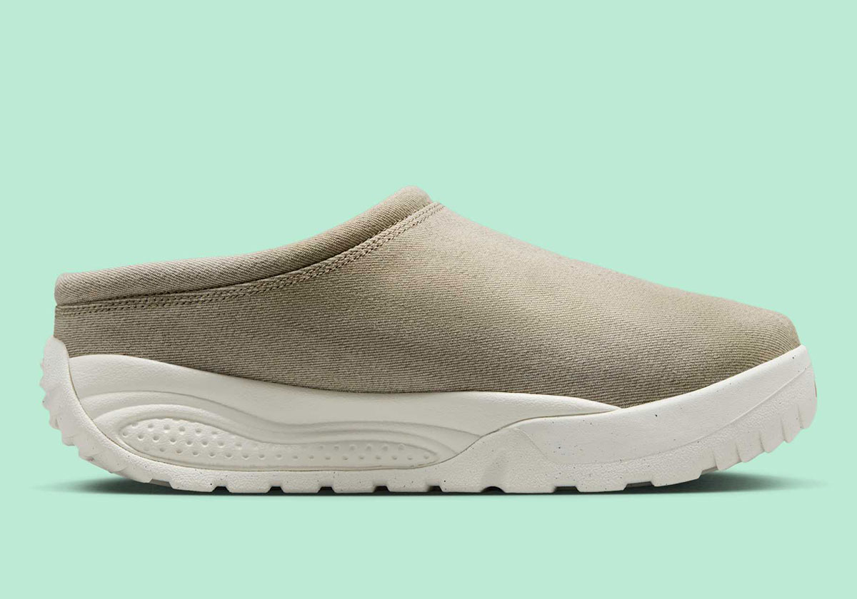 Official images reveal a fairly straight-forward design, with titular “College Grey” settling on the all-denim upper portion. A bronze mini Swoosh appears on the lateral side, while retro Nike ACG branding appears in orange on the footbed. The midsole alternates between “Phantom” and “Soft Pearl,” contrasted by green “Khaki” on the inside section of the outsole.