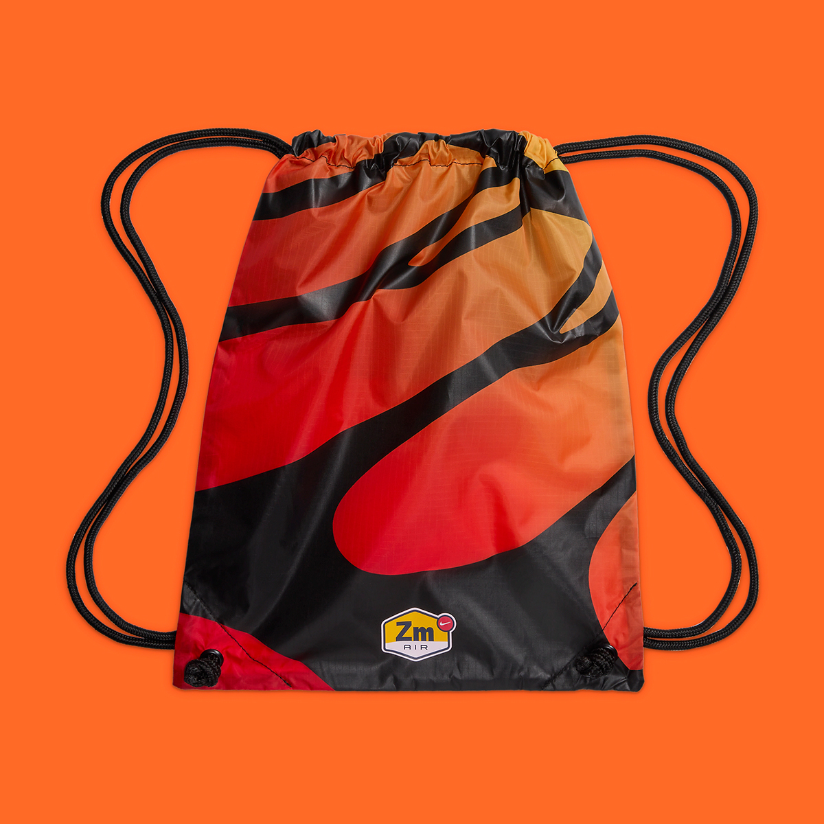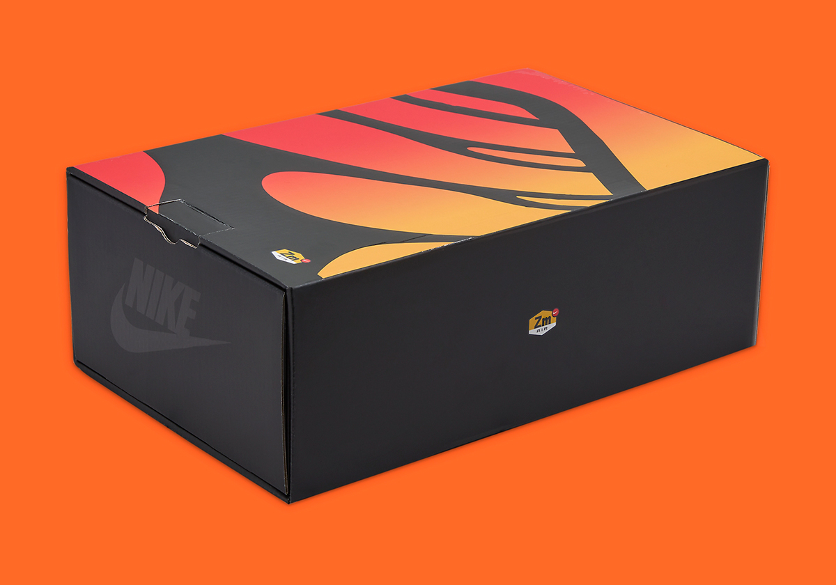 In the finer details, the link between the AM and the Mercurial continue, with “Zoom Air” branding appearing on the outsole and on the heel. Finally, the ties are really driven home in the periphery, with a drawstring bag and special box marking this release, both clad in the “Sunset” design.