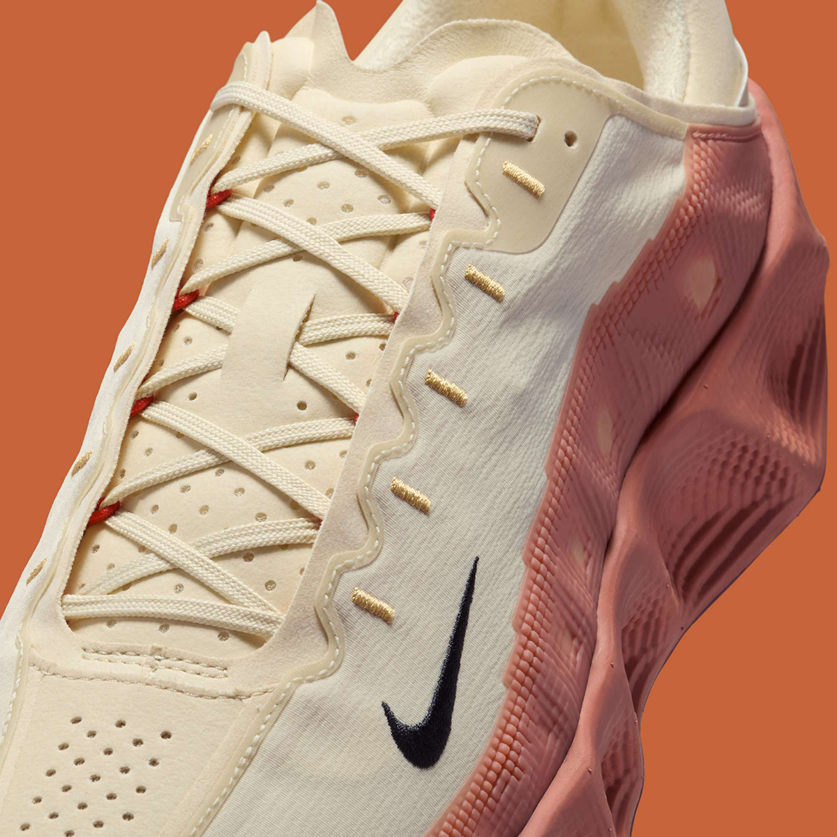 Spun off into clearer lifestyle use, ZoomX provides the cushioning for the entirety of the Ava Rover, leaning into its intergalactic title with deep craters within that underfoot section. Further, the red planet-approved “Cosmic Clay” keeps up that atmosphere, here utilized with a cohesive application across the midsole and pixelated welting above it, setting up nearly an even split with the “Fossil” off-white upper.