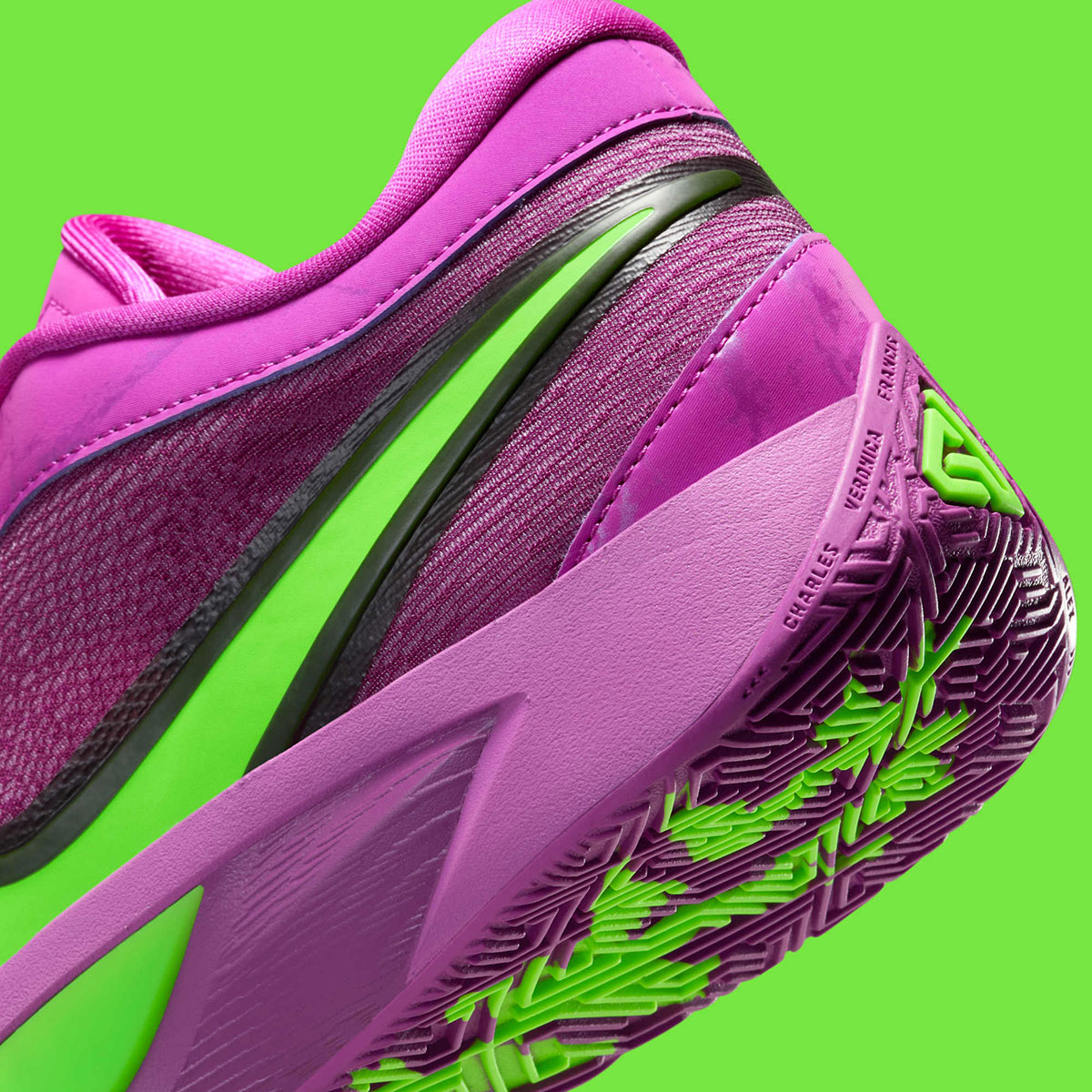 While not exactly aligned, the colors tie in the with Milwaukee Bucks’ purple and green “Light It Up” road jerseys worn from 1994-2006, albeit the shades used are far brighter here. The oversized Swoosh logo takes the “Electric Green” color, while the rest of the shoe appears in “Bold Berry” for statement-making contrast. For what it’s worth, we saw a similar palette loom over Antetokounmpo’s Immortality 4 takedown model in late 2024.