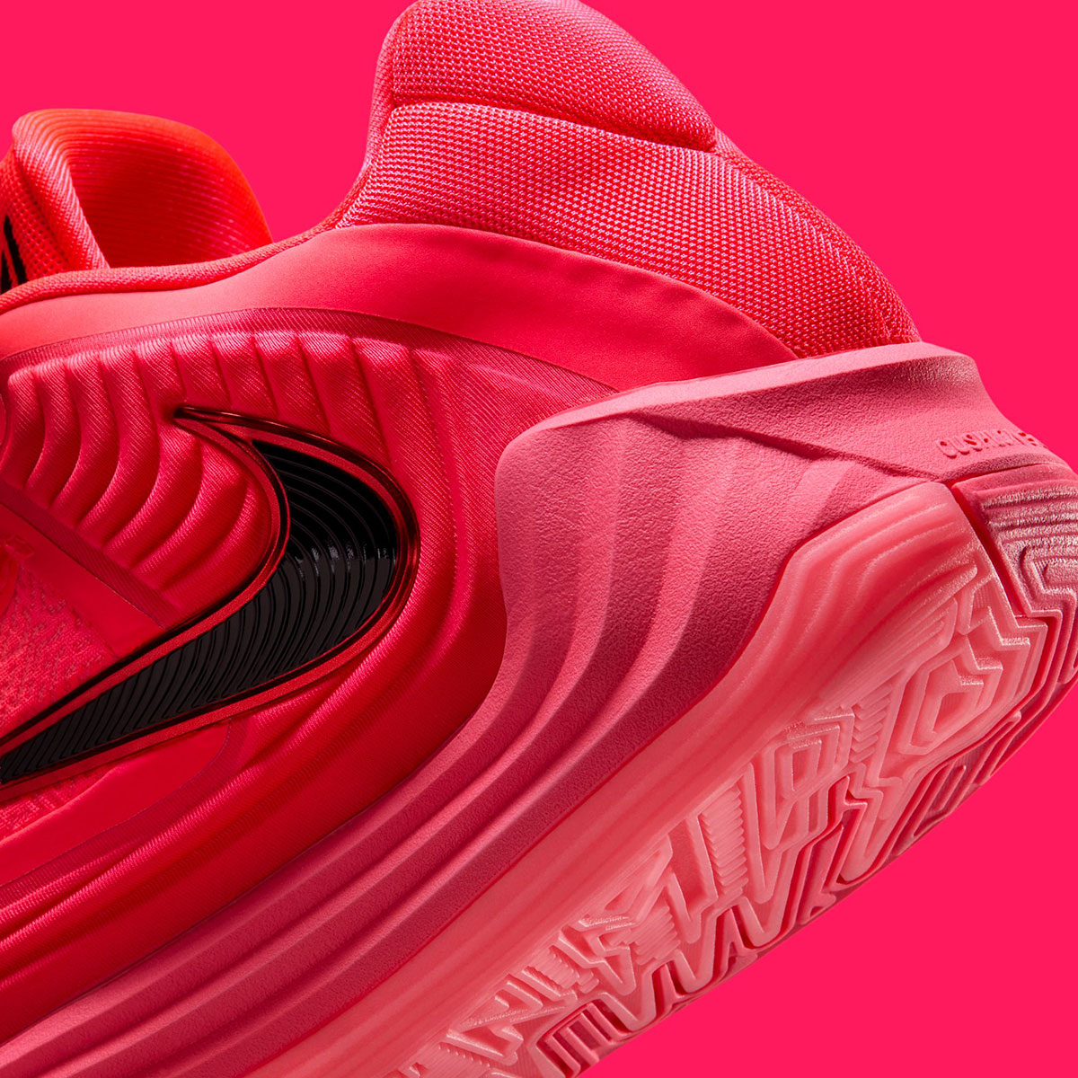 Despite what “Bred” is typically shorthand for, the model’s penchant for hi-vis shades twists the expectations that sneakerheads may approach this shoe with. To whit, almost every colorway that’s surfaced so far has featured some manner of neon shading, with the exception of the Freak 7’s “Team Bank” and a black and gum option uncovered alongside the shoe at hand. While darkened hits on the Swoosh and triangular “GA” branding on the tongue hold up one half of the equation, the rest of the shoe dresses in a vibrant “Solar Red,” edging towards pink rather than the usual fiery red promised in the title.