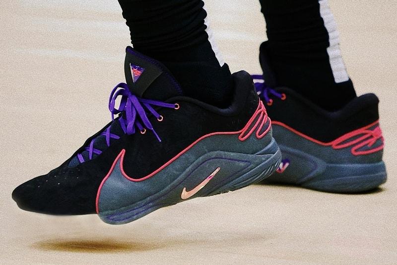 A new NBA season is upon us and that means that we'll be seeing new colorways and silhouettes hitting the courts. Amongst one of them are the Nike LeBron 22s. The Akron king himself, LeBron James is gearing up for a new season, playing side-by-side with his son Bronny James, ready to show-out in the new season with some never-before-seen sneakers. He teases what is to come for the upcoming season in a recent pre-season warm-up, revealing the "Blacklight" colorway for his latest signature sneaker. The shoe is dressed in a sleek, black nubuck upper, constructed of premium quality throughout. The shoe features a bold laser fuchsia that accents the outline of the shoe to contrast the darker hues. Dark grey panels complement the upper on the midsole while purple and guava ice details hit the shoe, adding to its design. The LeBron 22 sits atop a two-toned midsole on top of a Zoom Turbo unit for extra explosiveness. It is equipped with a full-length CushIon 2.0 foam for added comfort and is set to release in early December of this year.