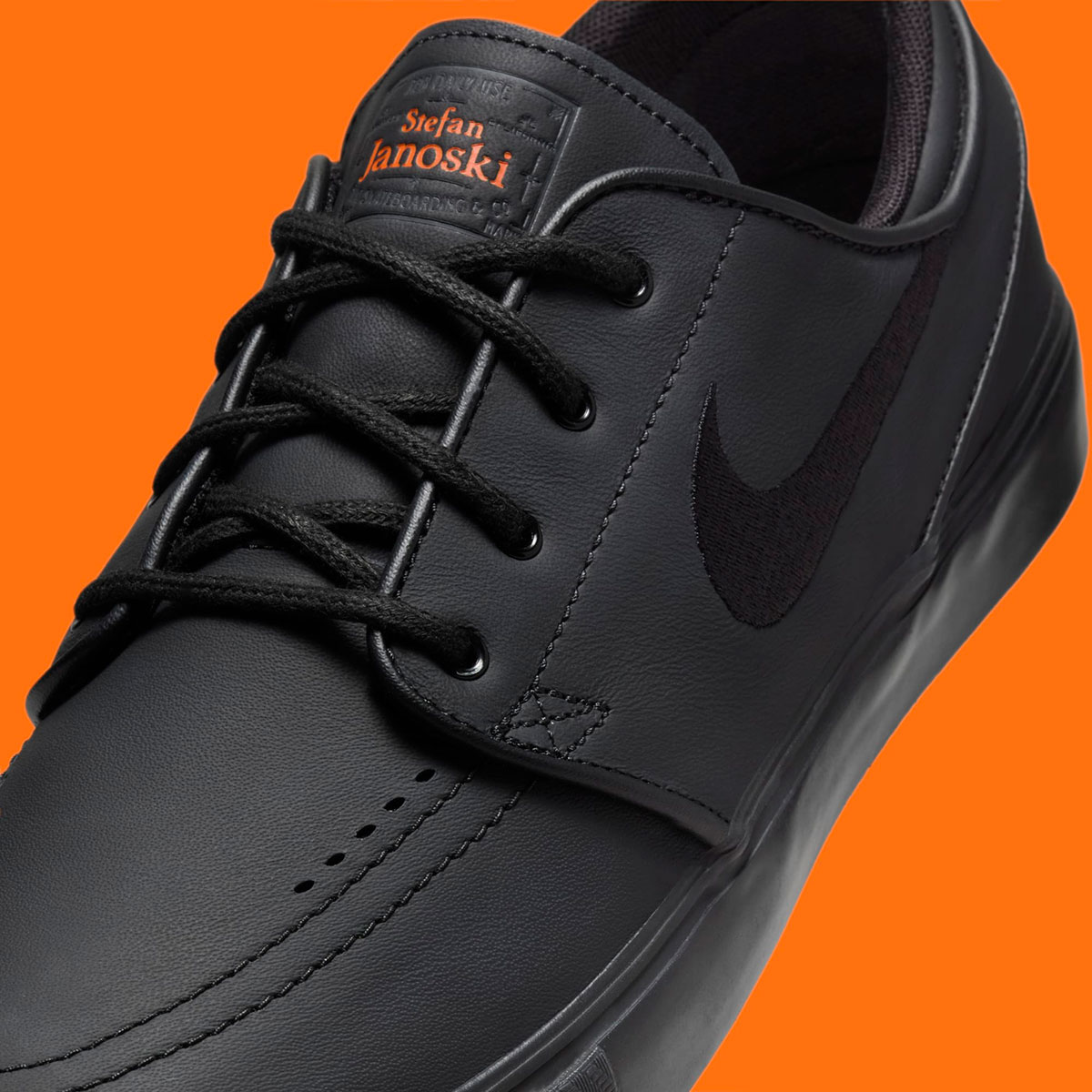 A fitting balance to the aforementioned trio, it now appears that all three models will also release in all-black makeup for Fall/Holiday 2024. Previewed here first with the Janoski, there’s not much to discuss from a design standpoint other than the fact that the shoes are crafted from leather as opposed to typical suede or canvas. Save for “Safety Orange” branding on the tongue and insoles, the shoe gives off an agreeable, stealthy aesthetic from top to bottom.