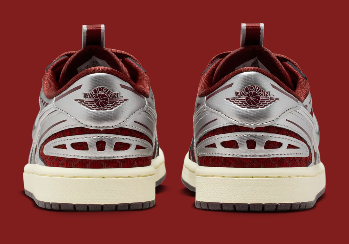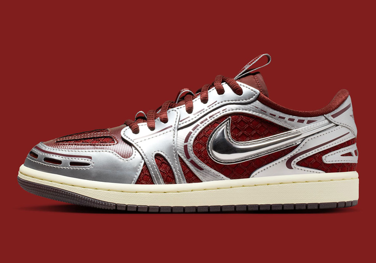 Following the “Sail” and “Black/Silver” Jordan 1 Low Method of Make v3 colorways comes this “Dark Team Red” edition – yet another option slated for Fall/Winter 2025. The titular shade lands on the base layer, covering the tech-runner-inspired forefoot underlays and diamond-patterned mesh fabric. Meanwhile, the overlays and Swoosh logos lean into the shoe’s Y2K inspiration in “Metallic Silver.”