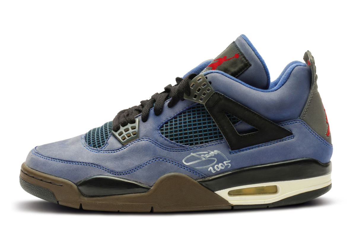 Hosted by Sotheby’s, an auction for the widely regarded colorway is currently available with an estimated sale to be in the range of $40,000 – $60,000. Rumored to be limited to just 50 pairs, the model was originally produced for friends and family, but a select amount of sizes were reserved for release through a public contest. Kicking off Eminem’s litany of collaborations with the Air Jordan 4, his first stab at Jordan’s fourth signature sports a titular blue nubuck with red, grey and brown accents resting throughout. Making the pair even more enticing, the mid-foot overlay is signed by Slim Shady himself in silver metallic sharpie alongside the colorways’ release year.