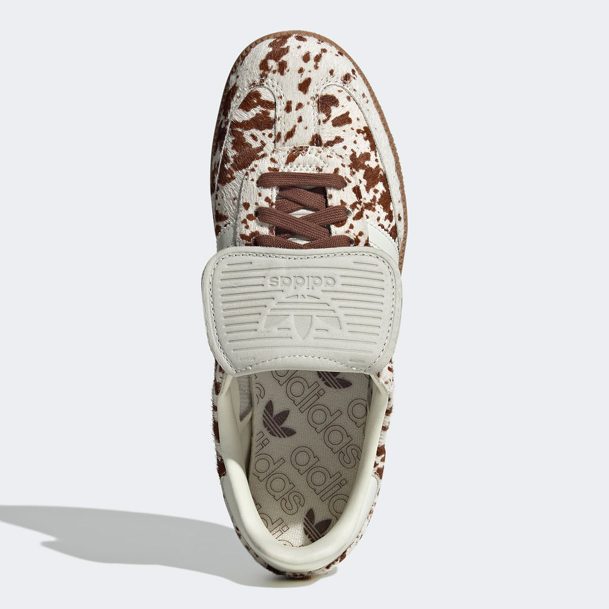 The Three Stripes has prepared two styles; one in black/white and another in brown/white. Both come with fold-over tongues and the same faux pony hair seen on the Cheetah Sambas. The black colorway features large spots, green leather stripes, and uniform black treatments on the tongue, lining, backtab, and outsole. The brown features smaller spots, white leather complements, and brown gum soles underfoot.